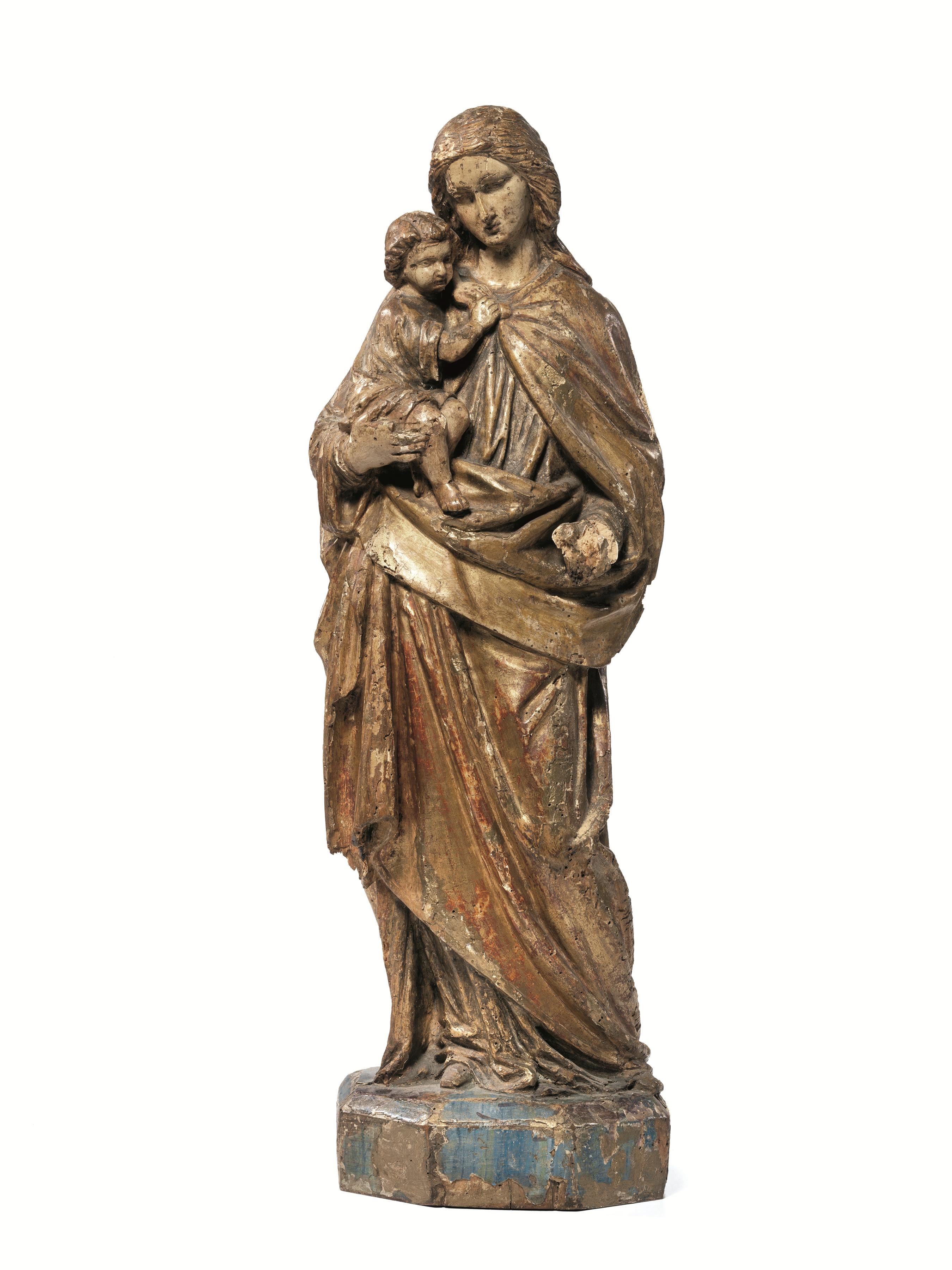 scultura lignea con tracce di policromia e doratura, alt. cm 61