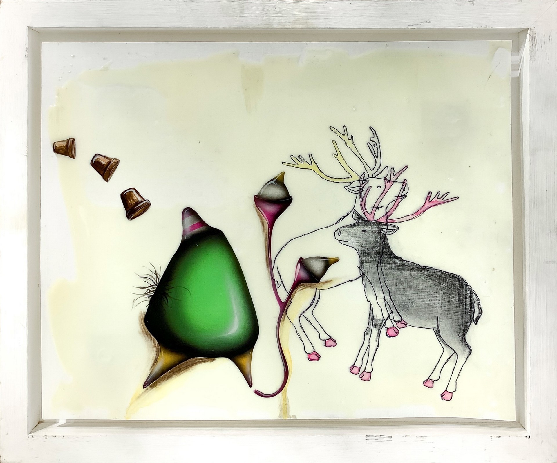 Piazza, Arianna (Asolo 1983) - Un cervo al giorno...e storie simili 40x50 cm tecnica mista su plex Firmato sul retro.