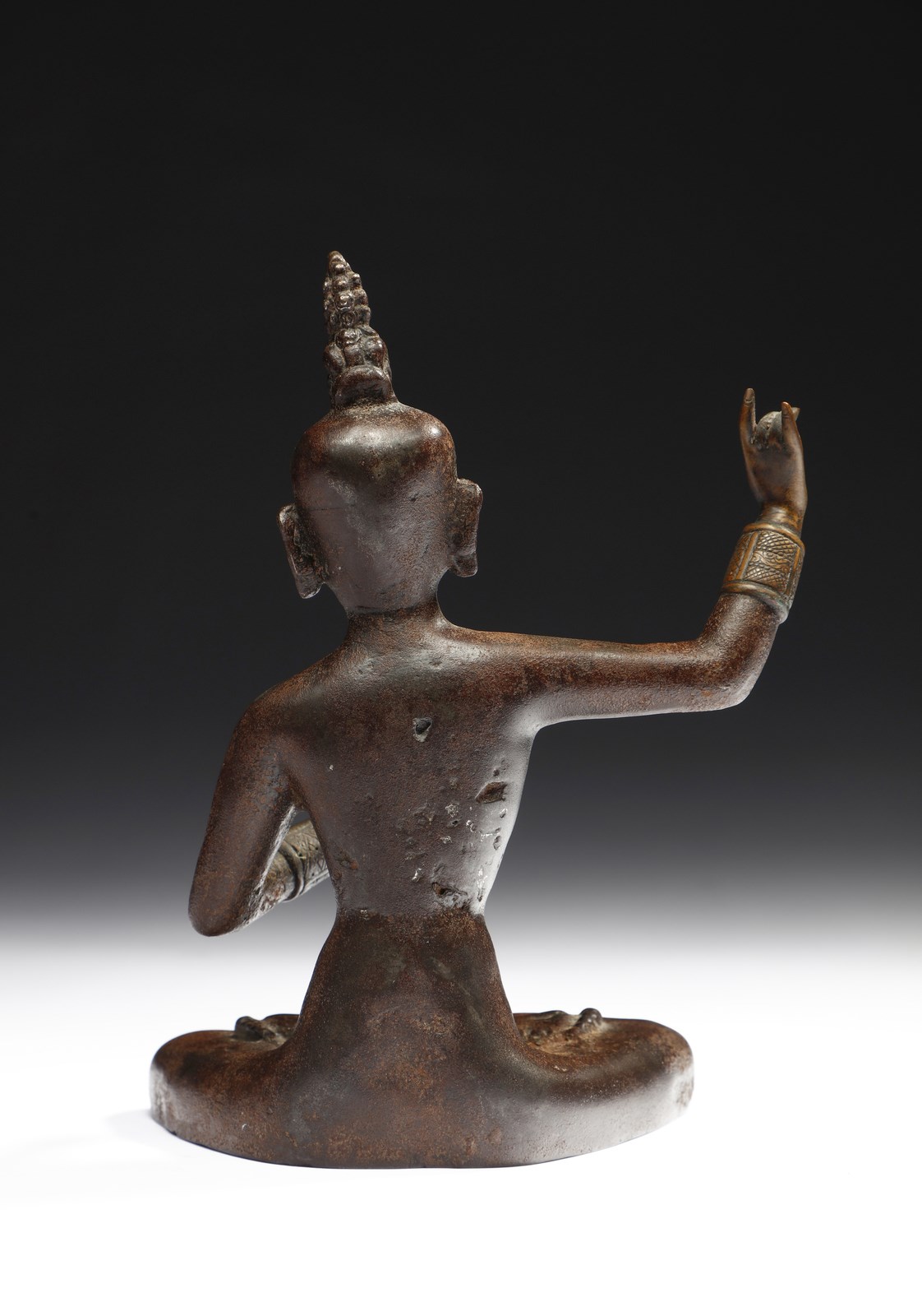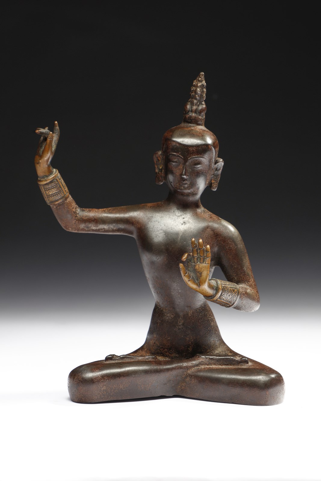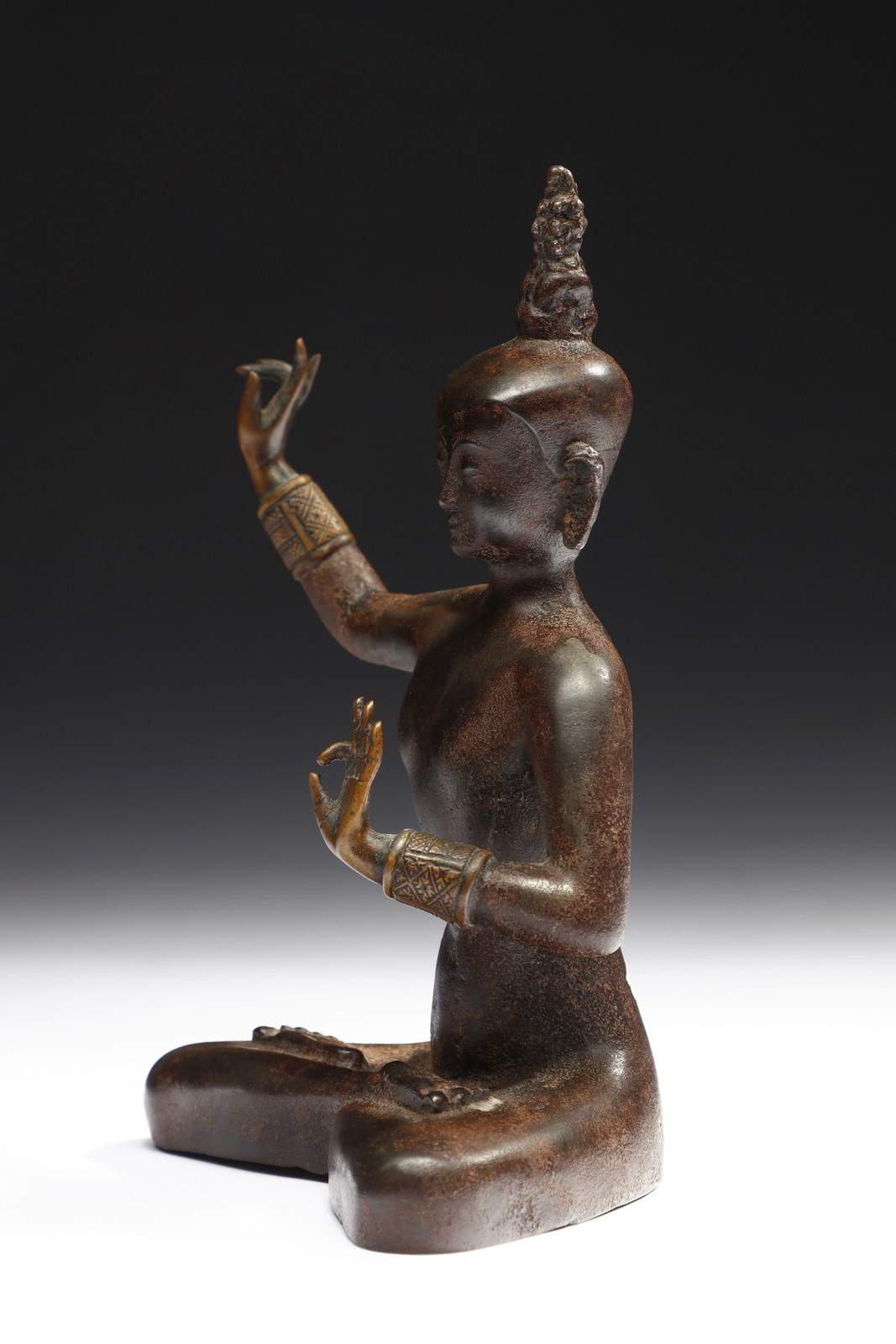 Raro e curioso esemplare dall'identificazione alquanto incerta, in quanto manca qualsiasi attributo. La posizione delle braccia è simile a quella assunta da Manjusri, ma mancano spada, abiti e corona a cinque punte a conferma di tale ipotesi. La corona apicata è in ogni caso simbolo di alto lignaggio religioso.