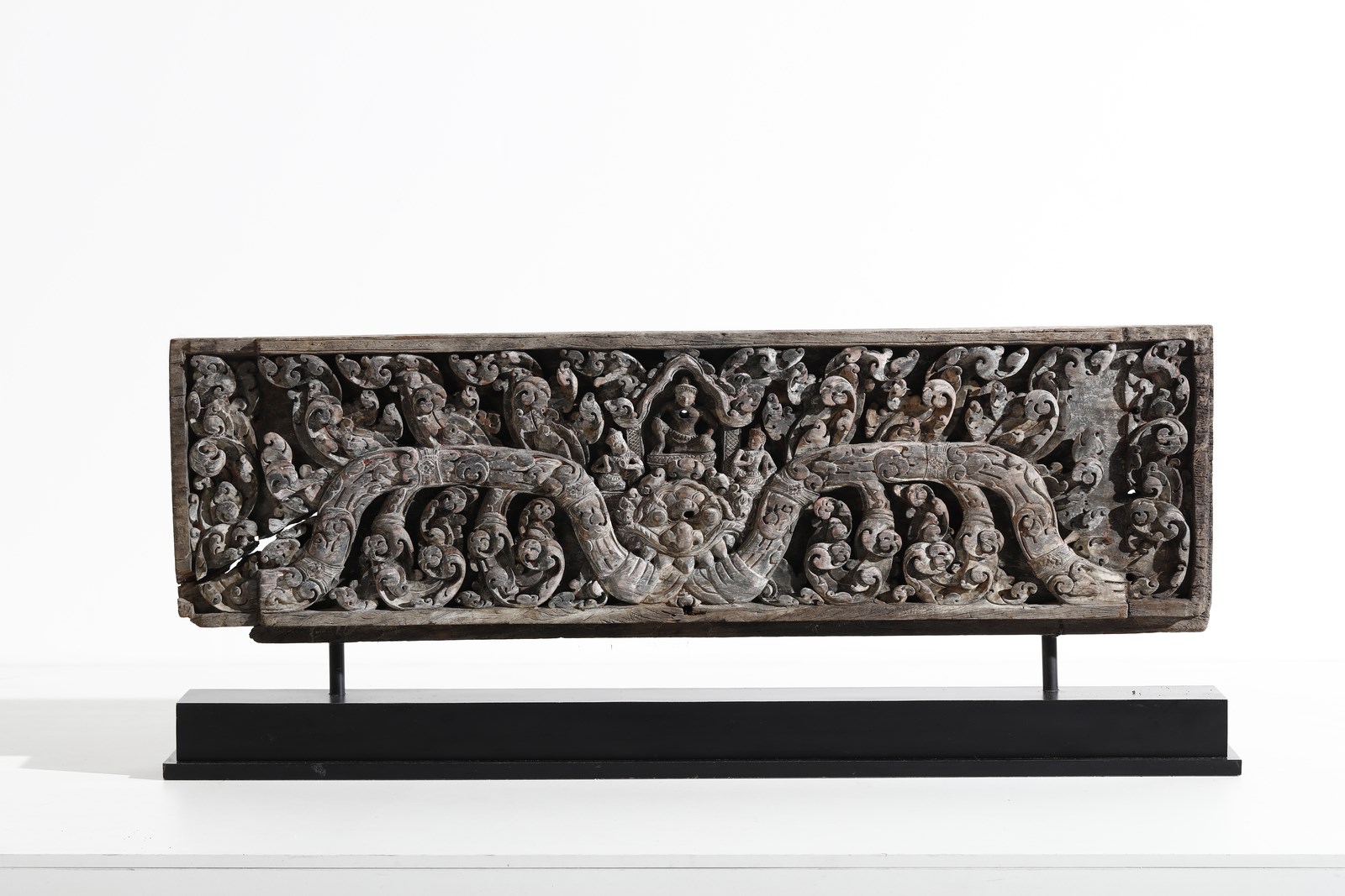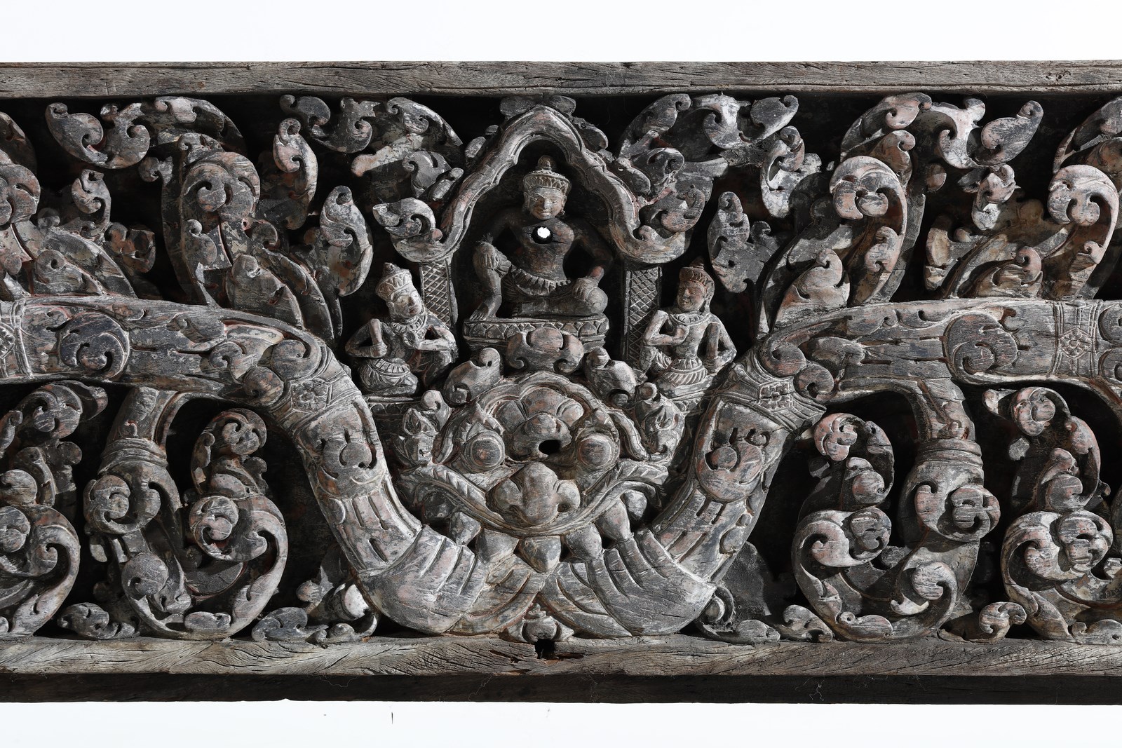 Arte Sud-Est Asiatico - Grande fregio in legno Cambogia, Khmer, XIV secolo.