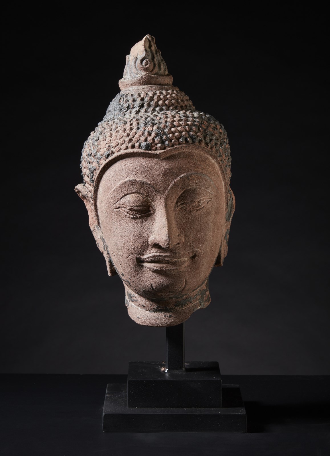 Arte Sud-Est Asiatico - Testa di Buddha in arenaria Tailandia, Ayutthaya (1351-1767), XV secolo.