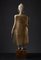 . . Cm 25,00 x 64,50. Fusione in bronzo di grandi dimensioni a patina bruna raffigurante il Buddha in piedi, con la mano destra alzata in gesto di pacificazione ed il braccio sinistro disteso lungo il fianco. Questa particolare postura della mano, conosciuta dai fedeli come abhaya mudra, o gesto dell' “allontanamento della paura”, fa parte della iconografia classica della statuaria buddhista e costituisce una versione popolare in Tailandia. Qui le immagini del Buddha stante, con una mano in abhaya mudra, formano il gruppo dei cosiddetti Pang Proht sat Buddha, espressione che indica il gesto di colui che “respinge l'animale inferocito”. In effetti, le cronache buddiste narrano dell'episodio in cui il principe Gautama calma e sottomette l' elefante che lo aveva attaccato.