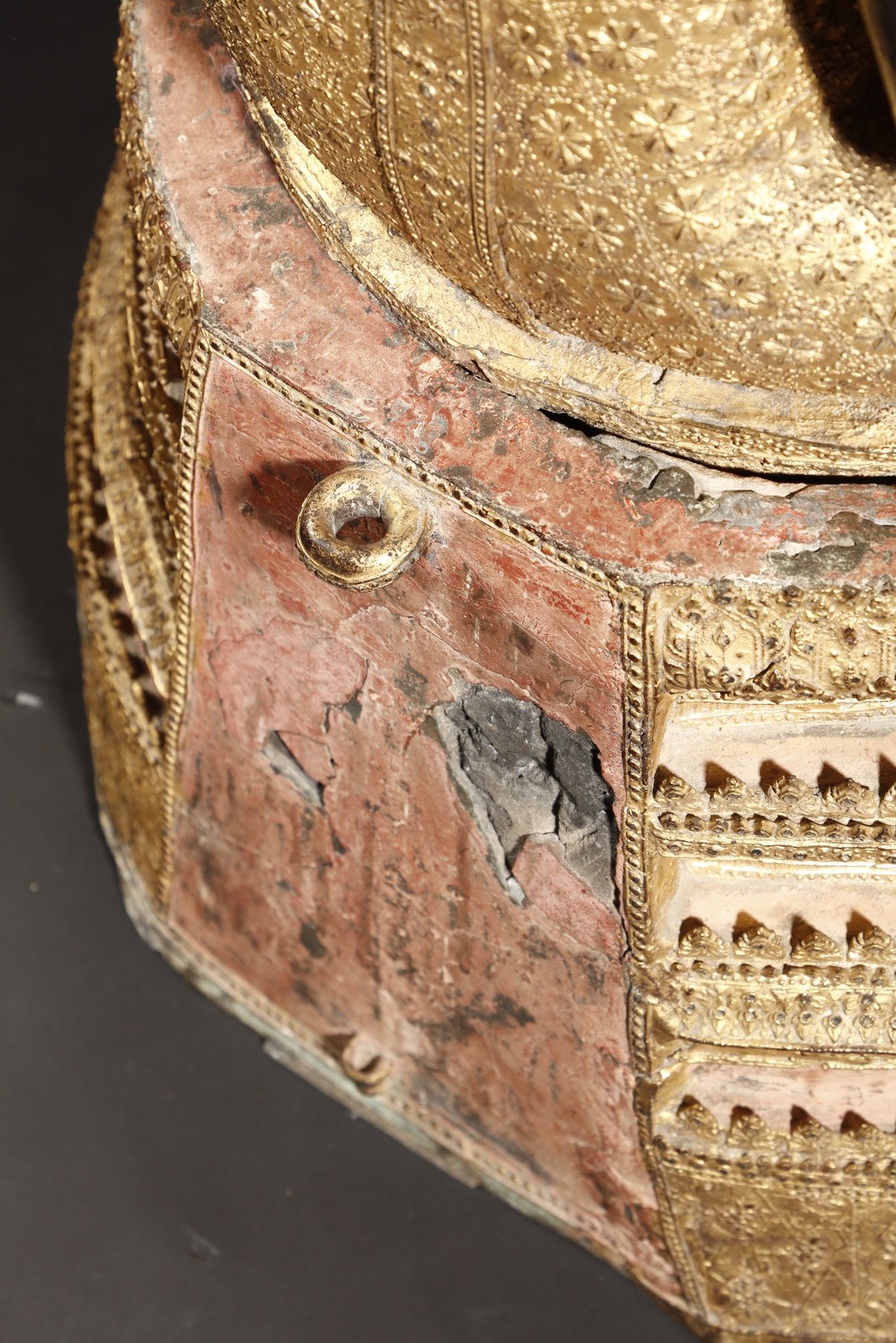 La presenza dell'ushnisha retrodata questo esemplare all'inizio della sua manifattura poichè la pratica di eliminare la protuberanza cranica nacque durante il regno di Rama IV (1851-1868) come tentativo di umanizzare il Buddha storico in seguito ad ingerenze stilistiche europee. Gli esemplari più tardi infatti, la sostituiscono spesso una corona con guglia apicale.