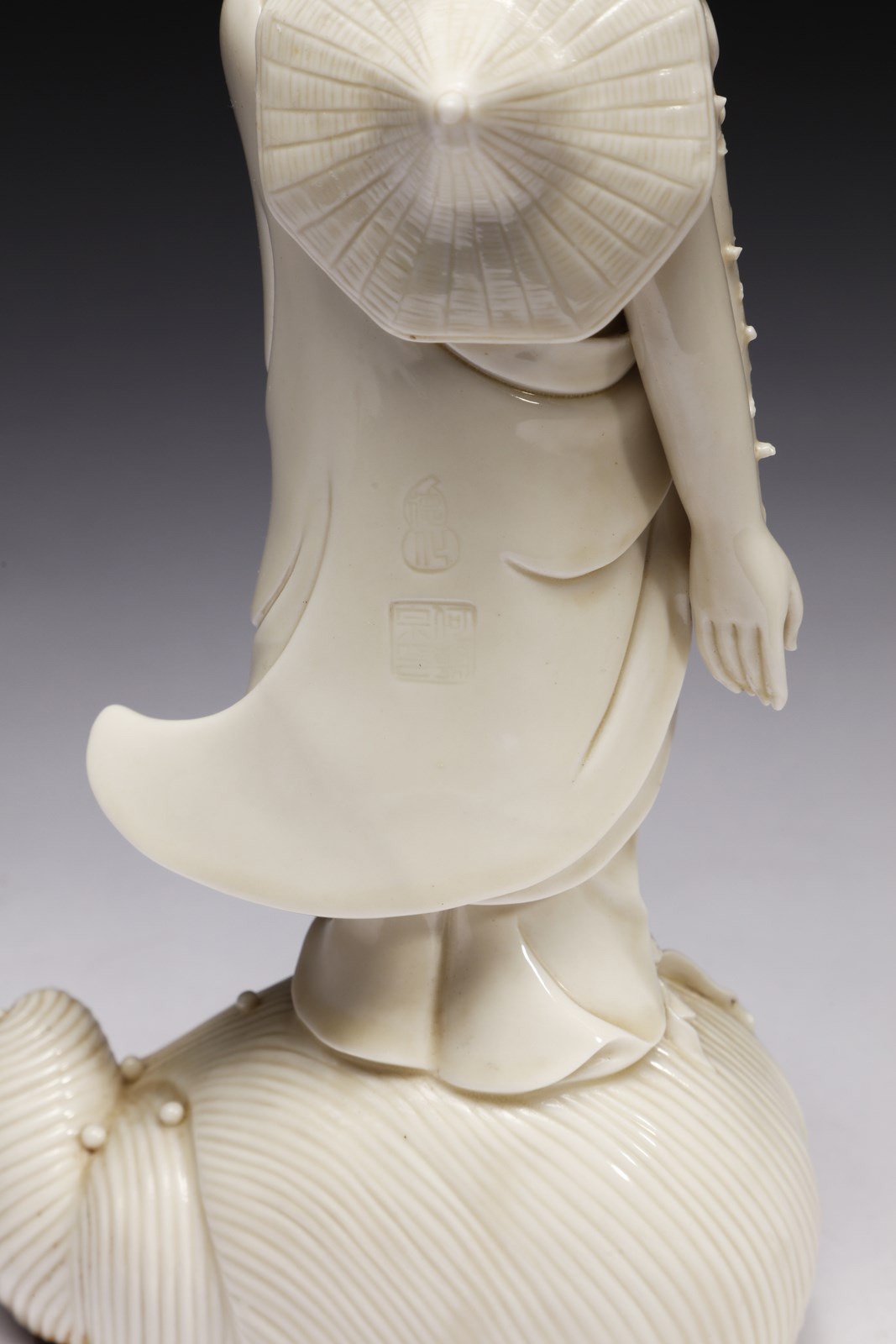 Porcellane bianche di questa natura, meglio conosciute in Occidente con il nome francese Blanc de Chine, venivano prodotte nei fornaci di Dehua, nella provincia di Fujian.
