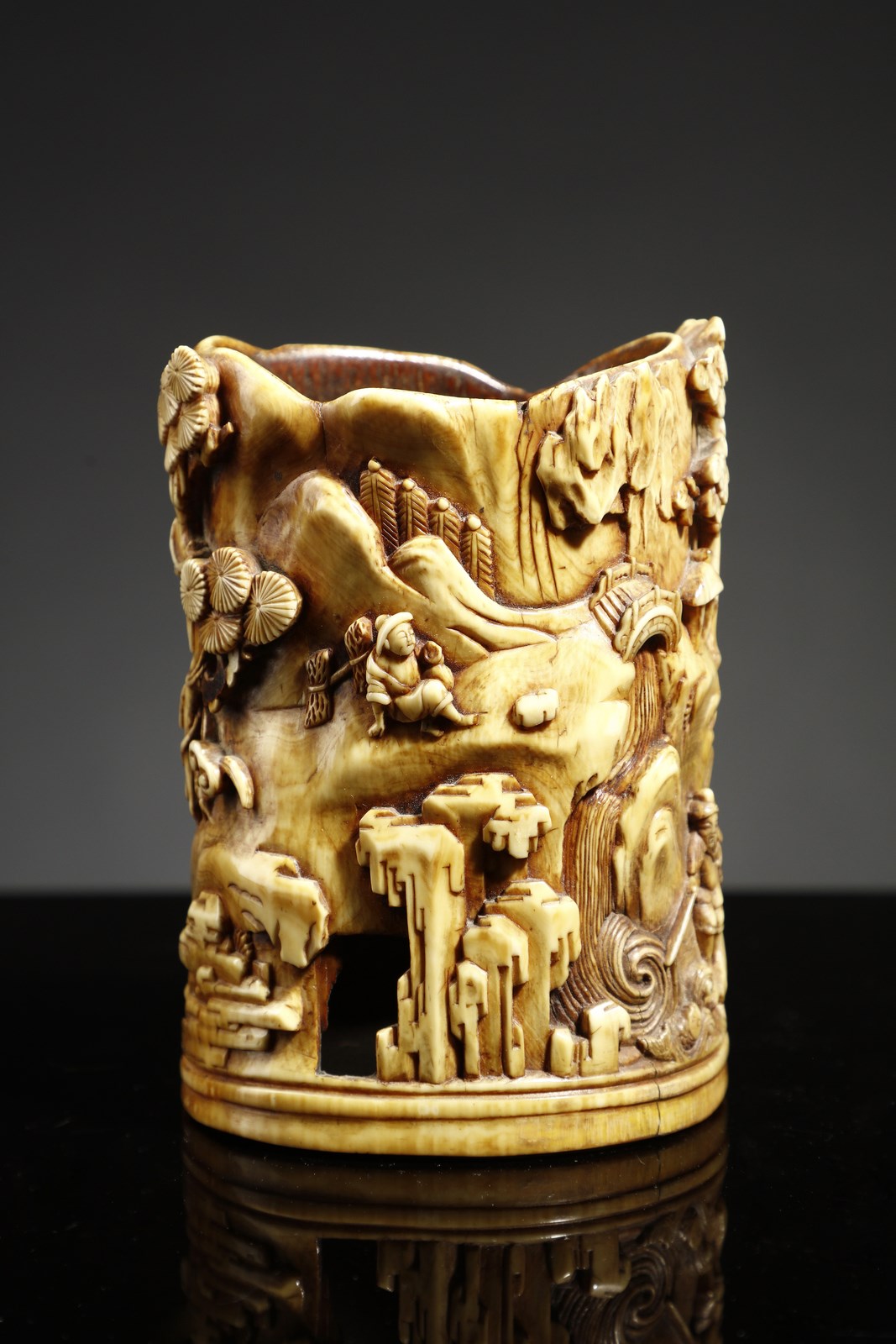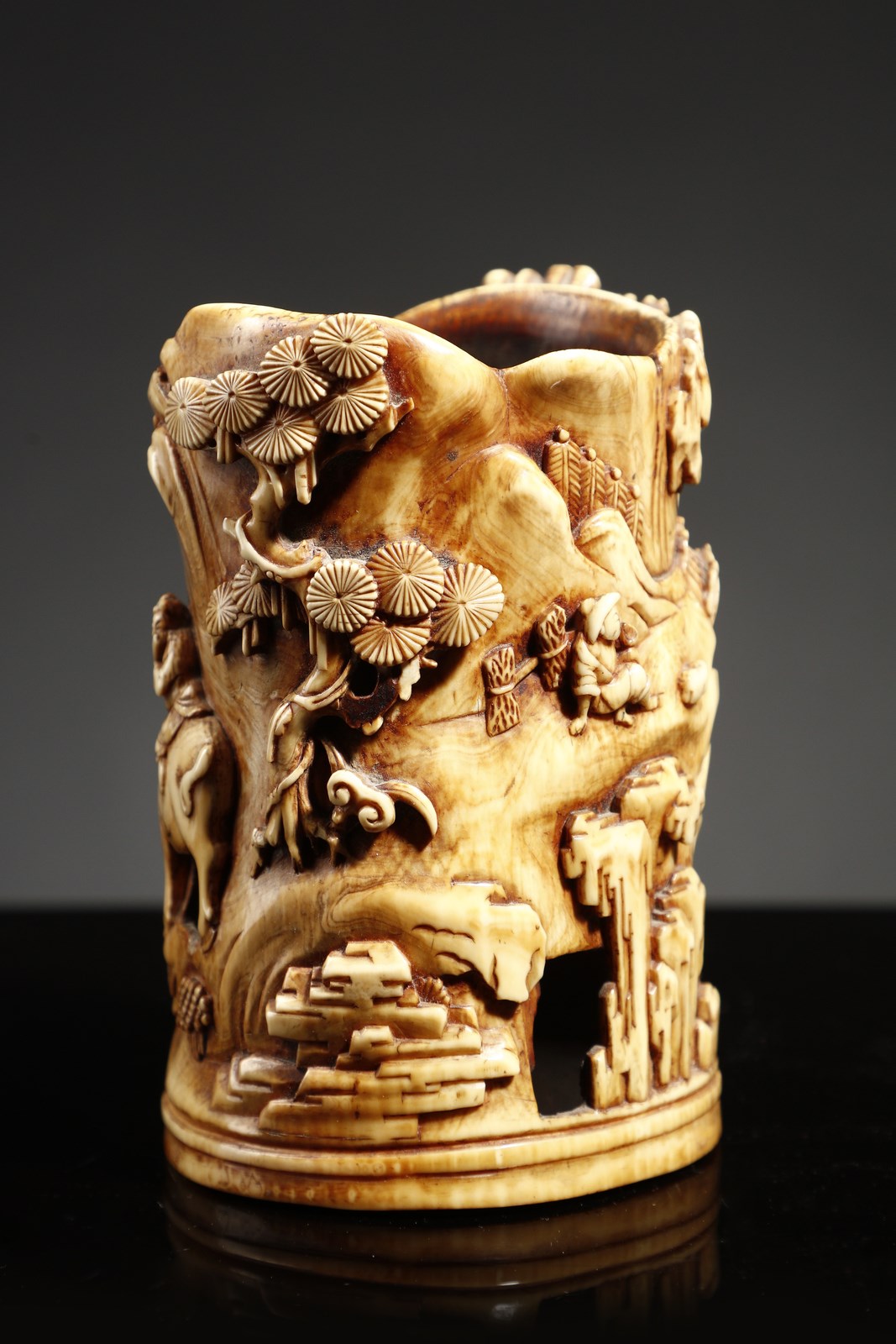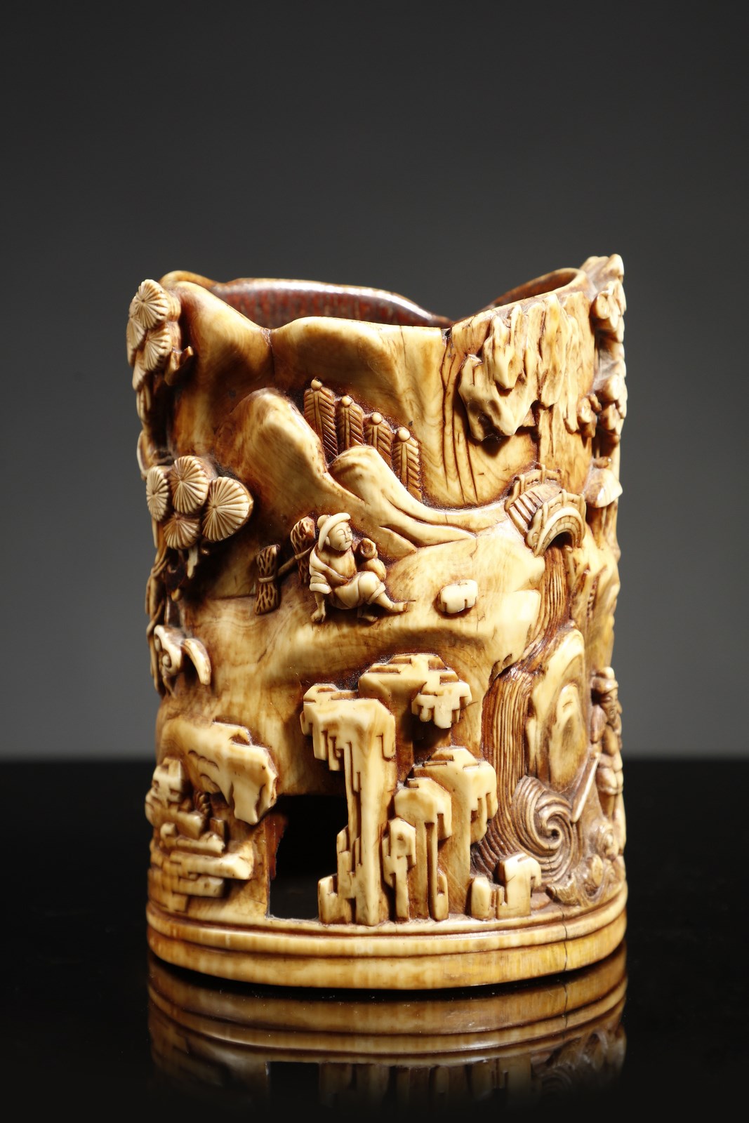 Arte Cinese - Portapennelli bitong in avorio Cina, dinastia Qing, XIX secolo.