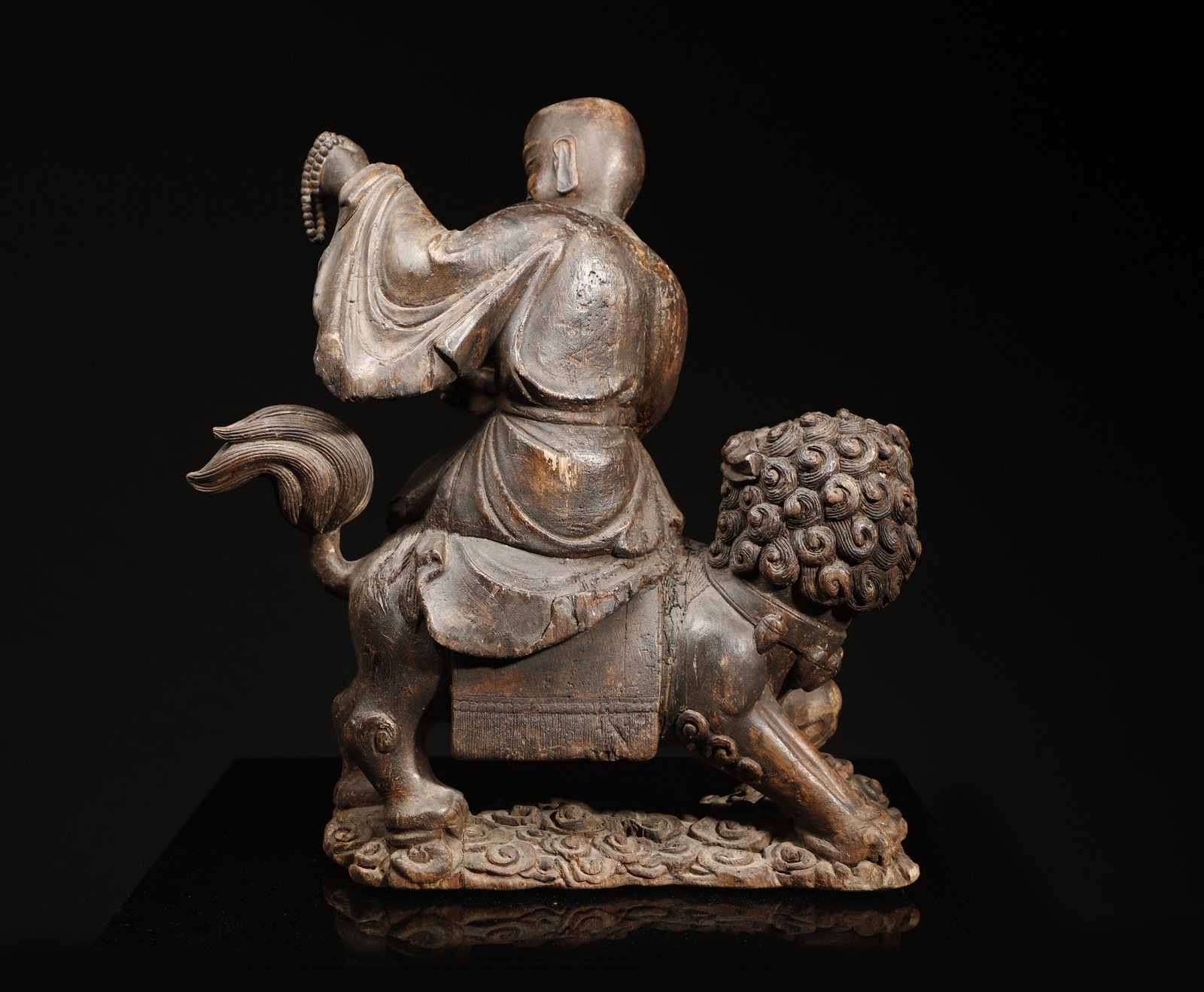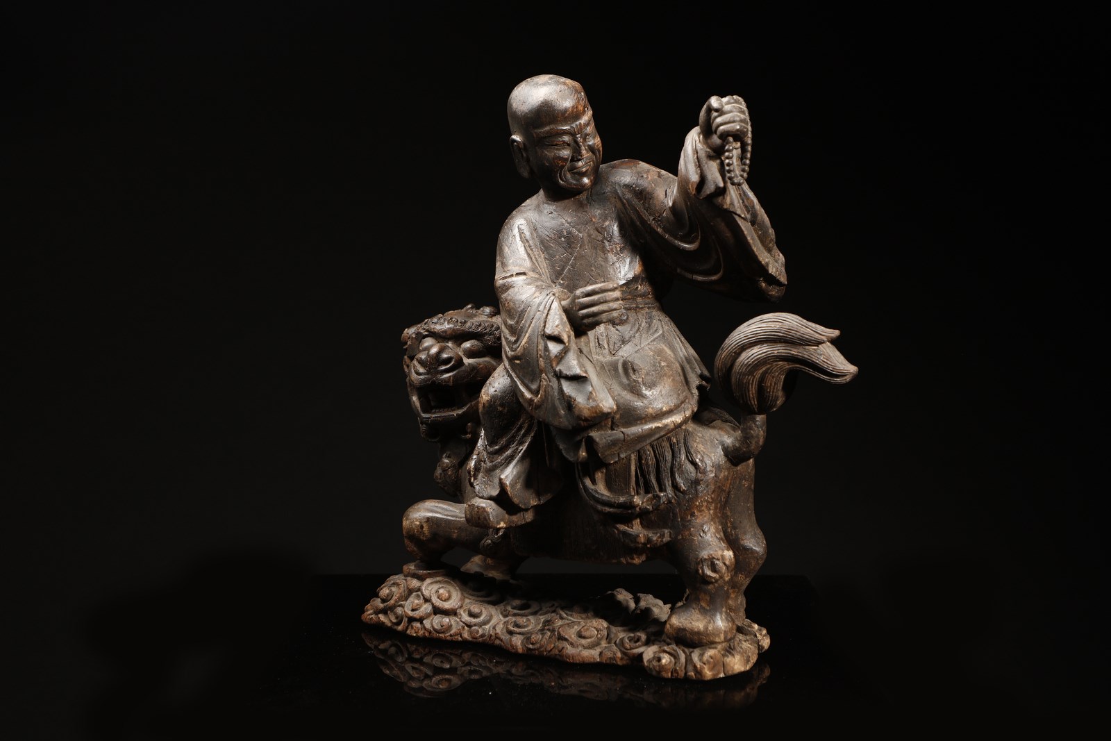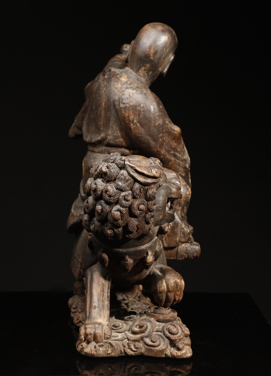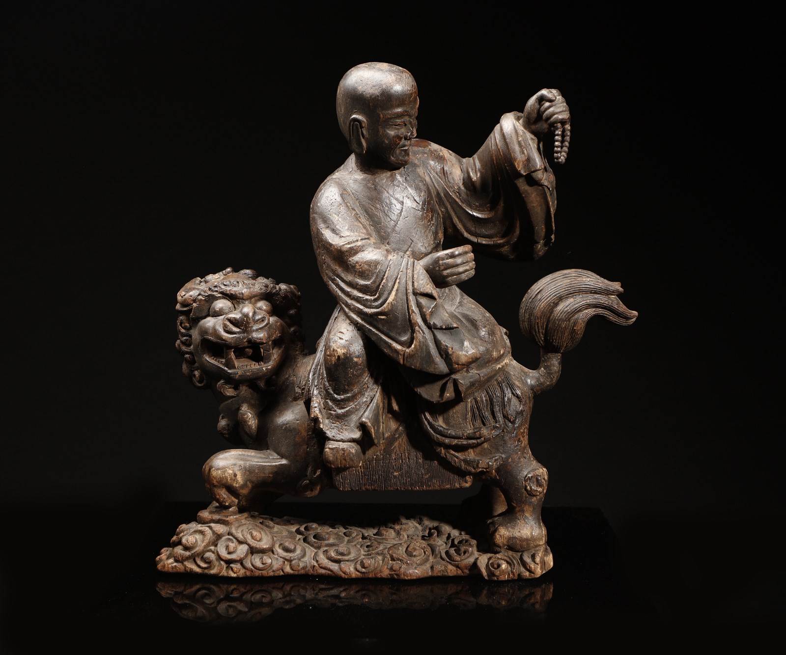 Lotto 184 | Arte Cinese - Scultura in legno raffigurante Lohan su tigre Cina, dinastia Ming, XVII secolo.