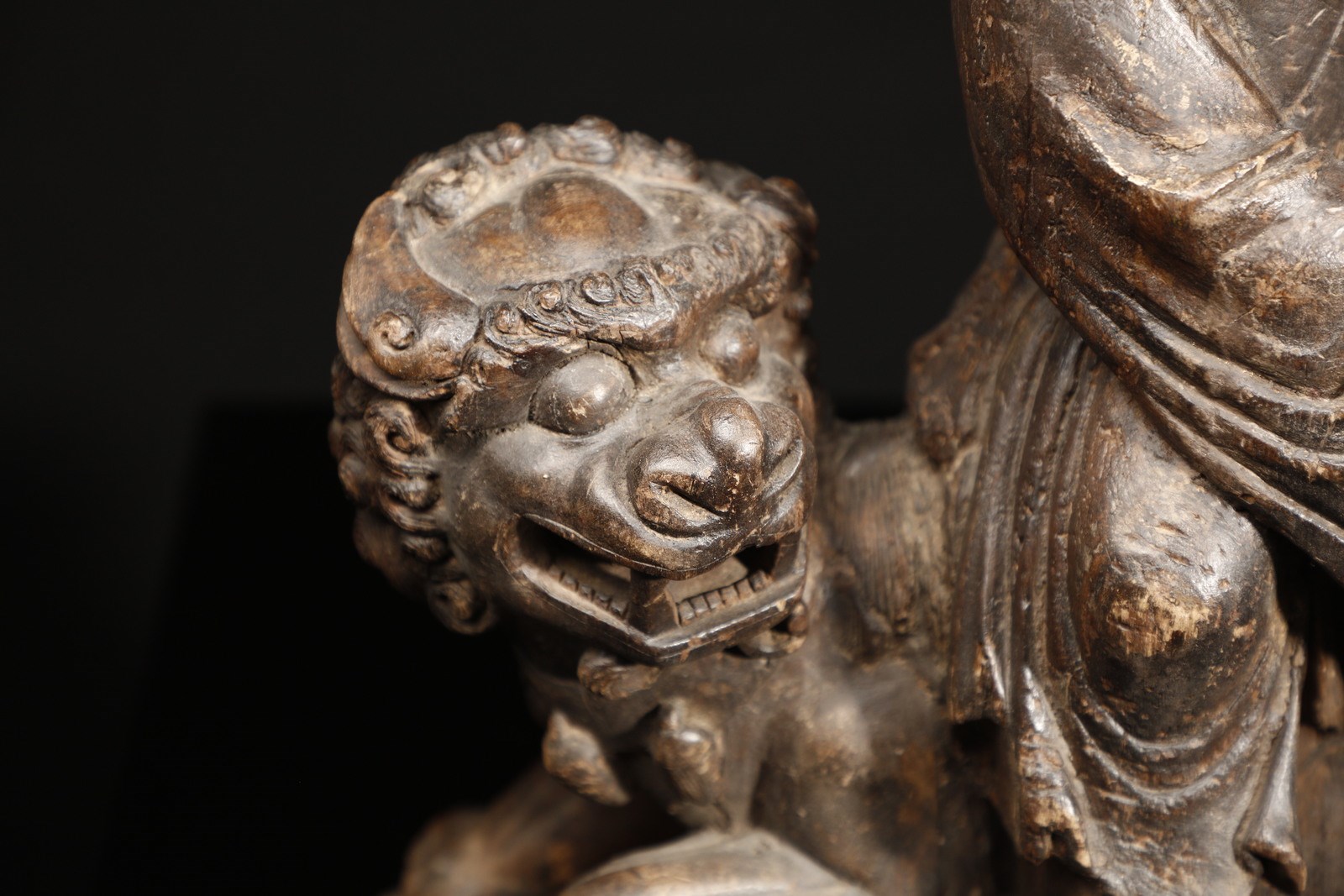 Arte Cinese - Scultura in legno raffigurante Lohan su tigre Cina, dinastia Ming, XVII secolo.