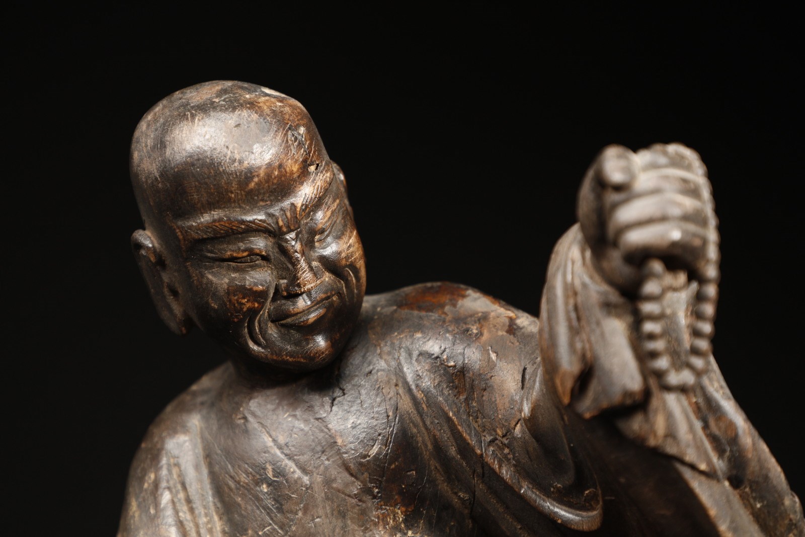 Arte Cinese Scultura in legno raffigurante Lohan su tigre