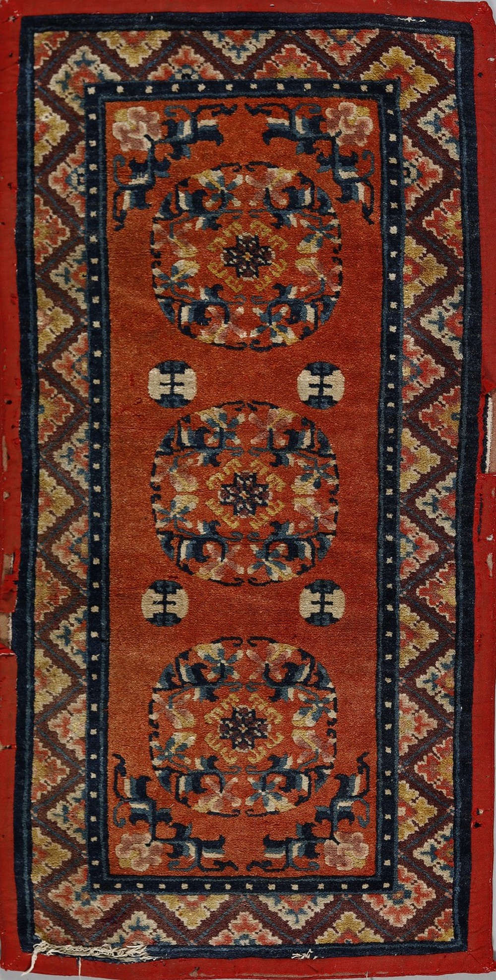. - Tappeto tibetano con bordo a chevron inizio XX secolo .