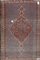 Iran, fine XIX - inizi XX secolo. . Cm 124,00 x 191,00. Tappeto a fondo viola fumo con riserva centrale decorata a motivi fitomorfi e cornice esterna rossa e crema.