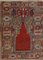 Anatolia, fine XIX secolo . . Cm 45,00 x 150,00. Tappeto per la preghiera in lana, decorato con nicchia centrale rossa cuspidata e bordura con elementi vegetali geometrizzanti su sfondo beige.