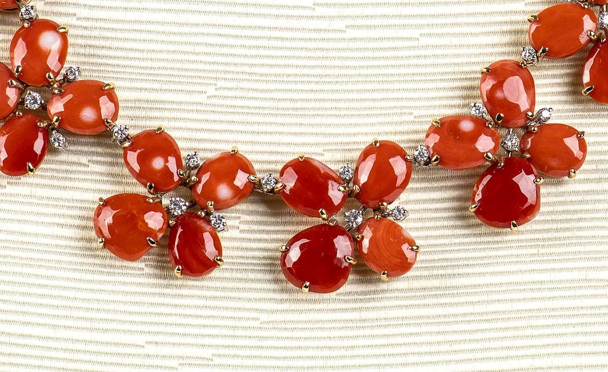 Girocollo in oro, corallo Cerasuolo e diamanti