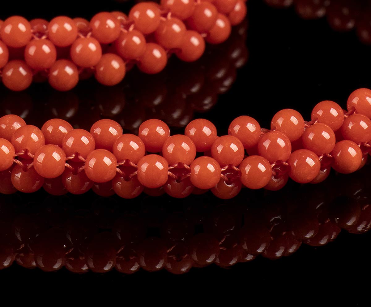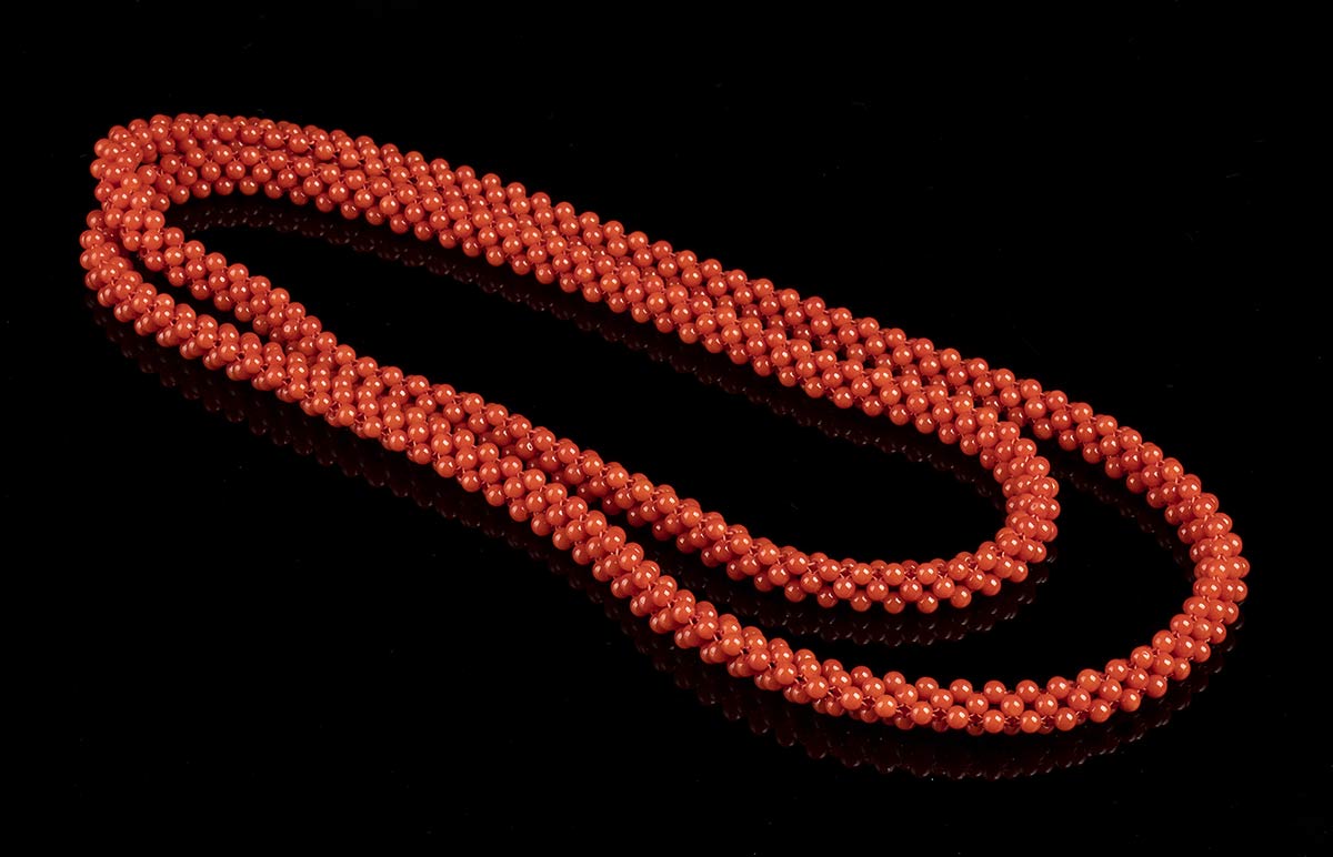 Lunga collana a maglia tessita in corallo Mediterraneo