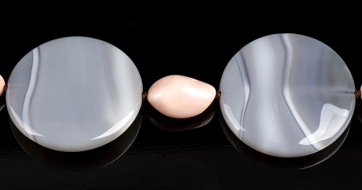 2 bracciali e 3 girocolli in argento con pietre dure, corallo rosa, corallo Mediterraneo,