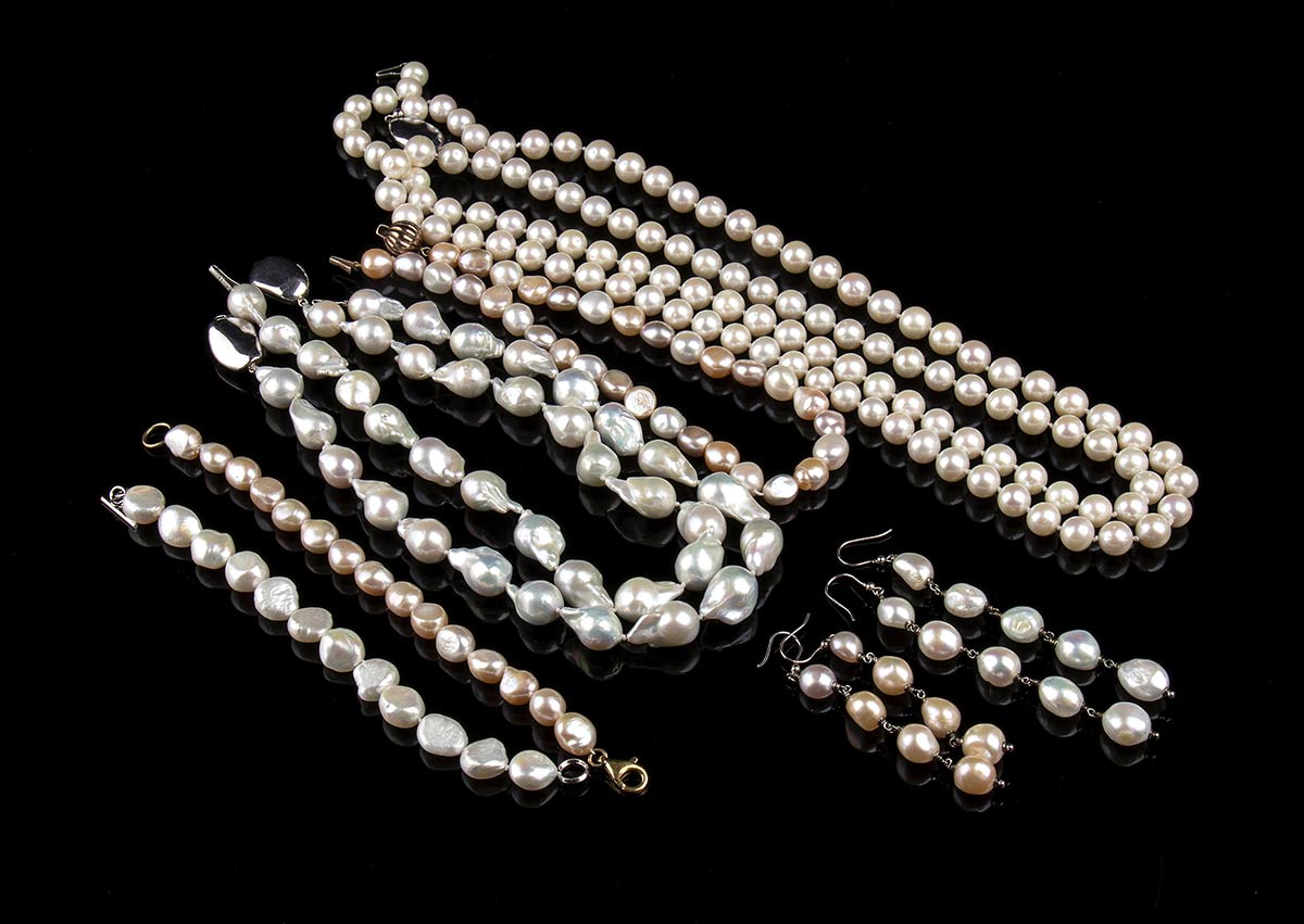 4 collane, 2 bracciali e 2 paia di orecchini con perle di fiume