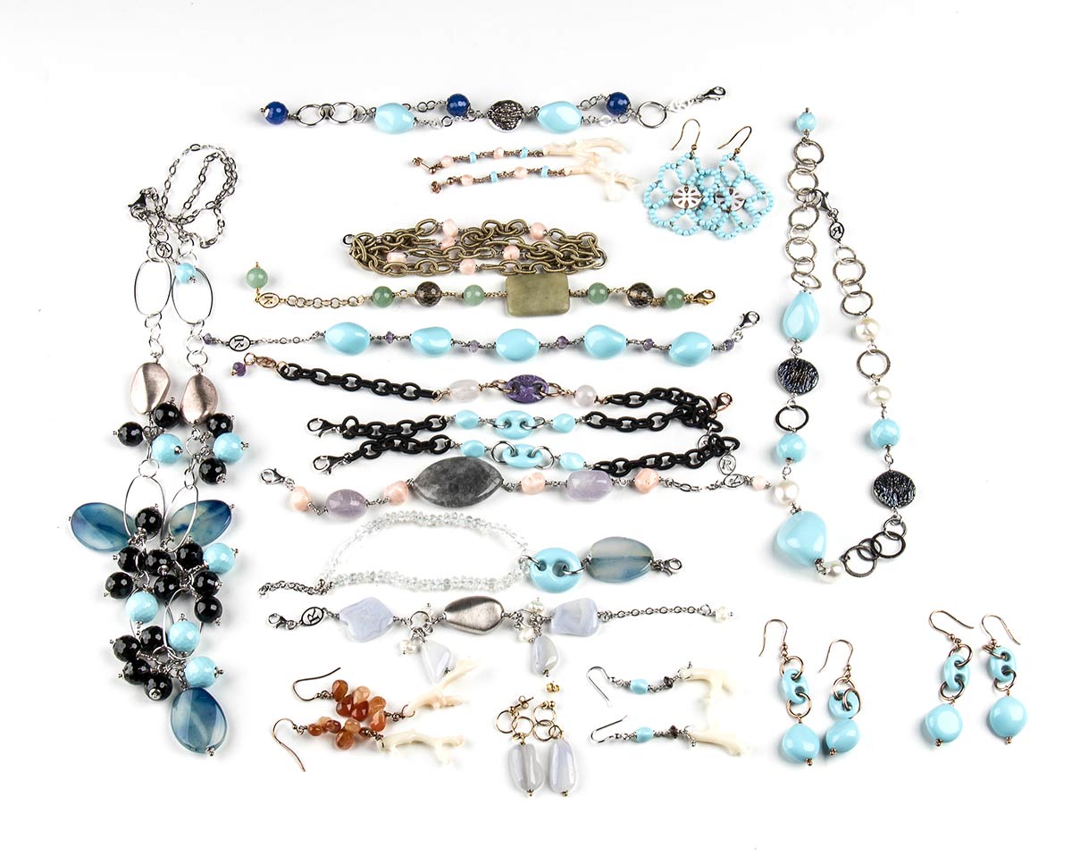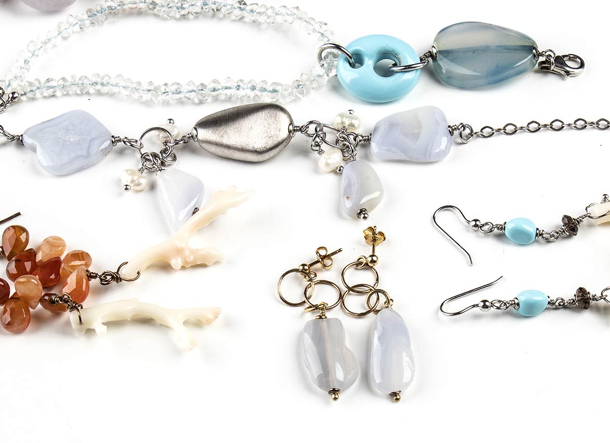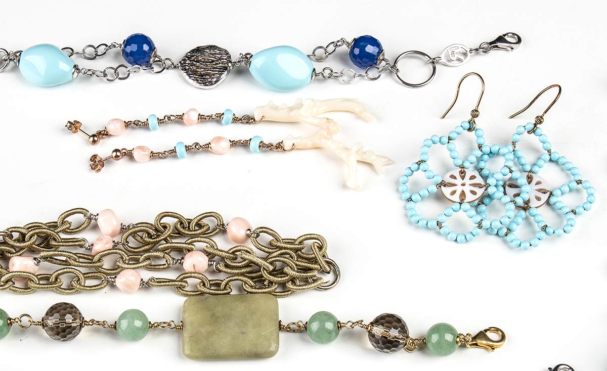 9 bracciali, 5 paia di orecchini e 2 collane in pietre dure