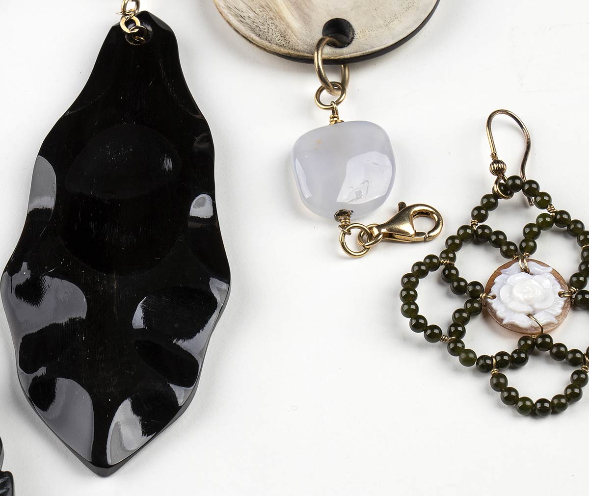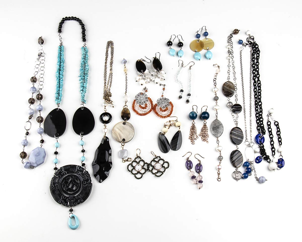 6 collane, 9 paio di orecchini e 3 bracciali, in pietre dure, metallo ed argento