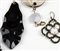 in osso, calcedonio, agata, quarzo fumè, onice, turchese naturale, pasta di turchese, perle di fiume, cristallo di rocca, corniola, ametiste, conchiglia, nefrite, acquemarine e lapislazuli. Montatura in metallo ed argento. Peso totale 540 gr. Stato di conservazione: ***** eccellente.