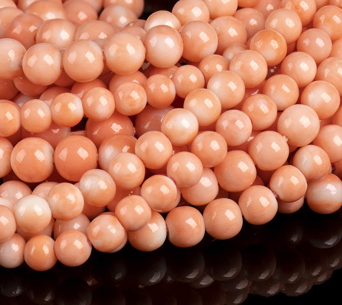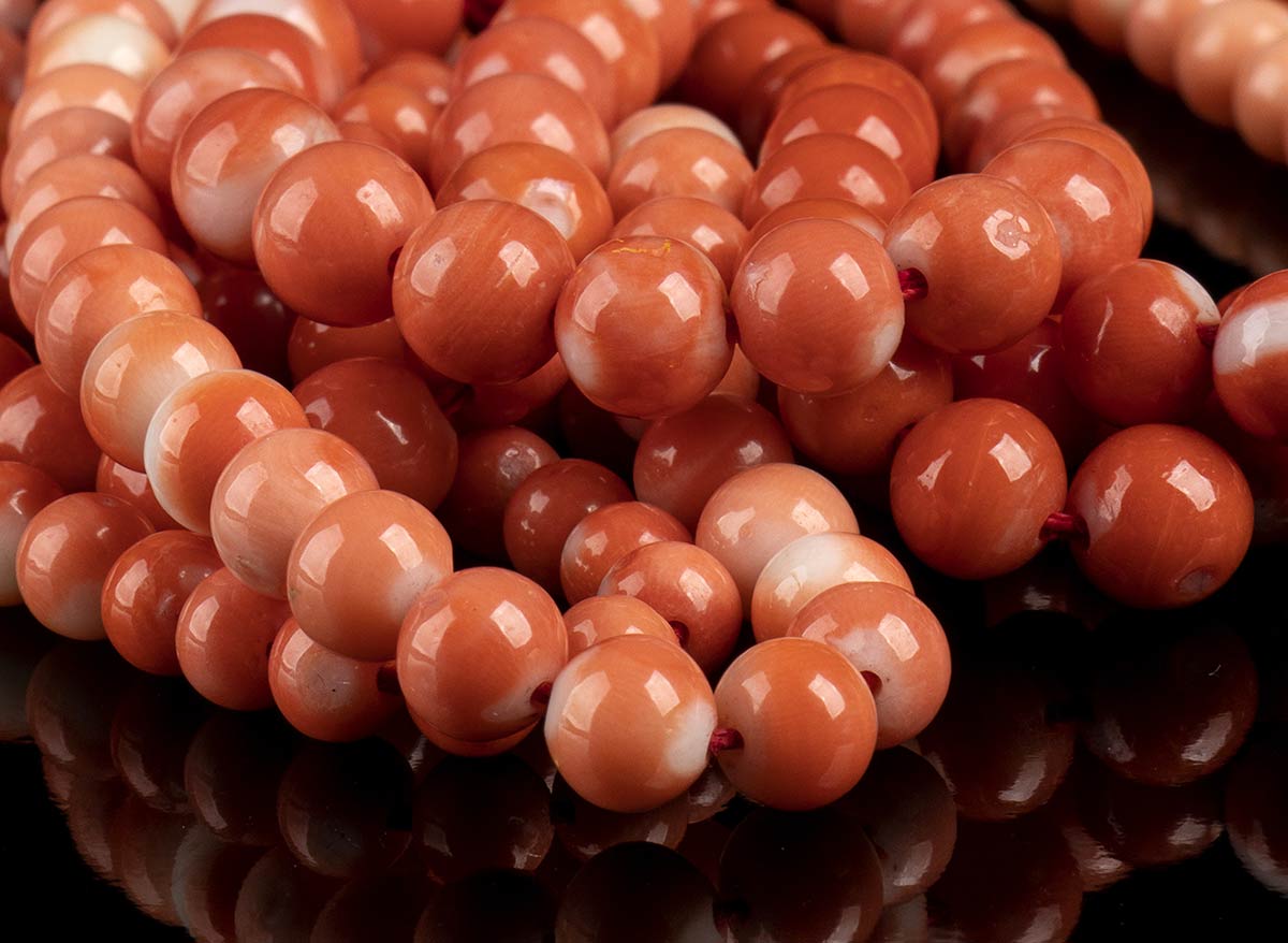 (corallium secundum). 19 fili, lunghezza 43 cm, diametro 4,5-6,5 mm; 16 fili, lunghezza 55 cm, diametro 6-14 mm; 13 fili, lunghezza 42 cm, diametro 4,5-7 mm. Peso totale 1318 circa. Stato di conservazione: ***** eccellente.