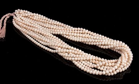 9 fili slegati di sfere di corallo rosa
