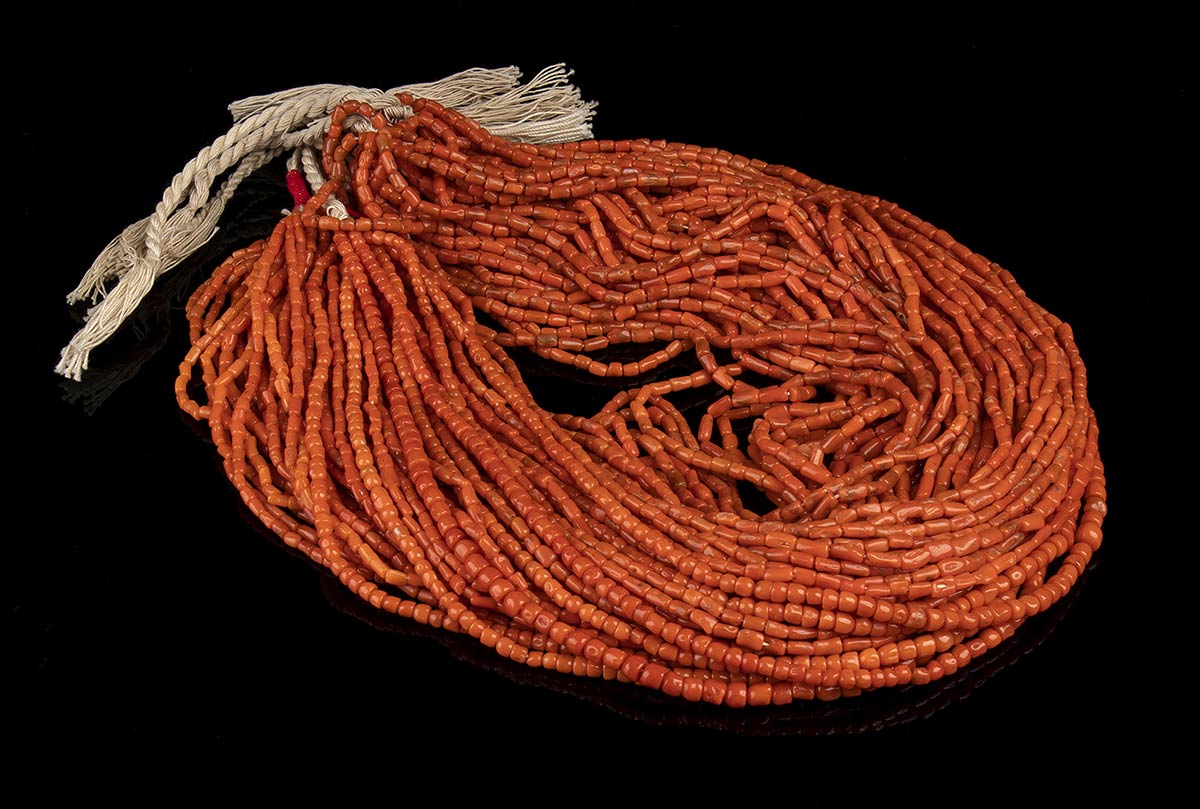 (corallium rubrum). Diametro 3-4,5 mm. Lunghezza 47 cm. Peso totale 507 gr circa . Stato di conservazione: ***** eccellente.