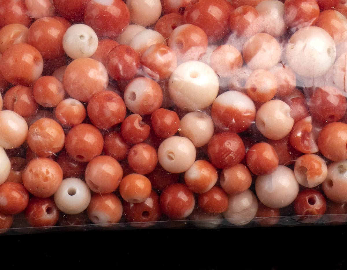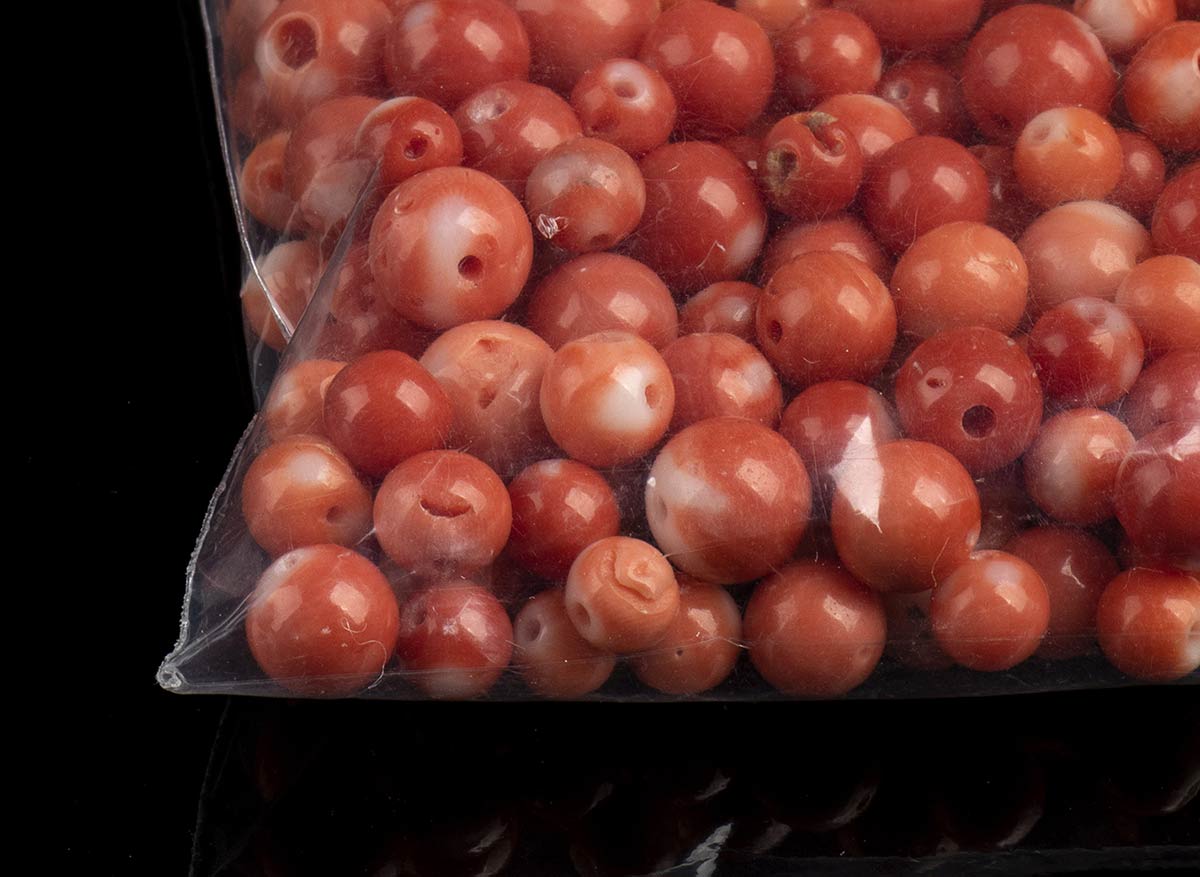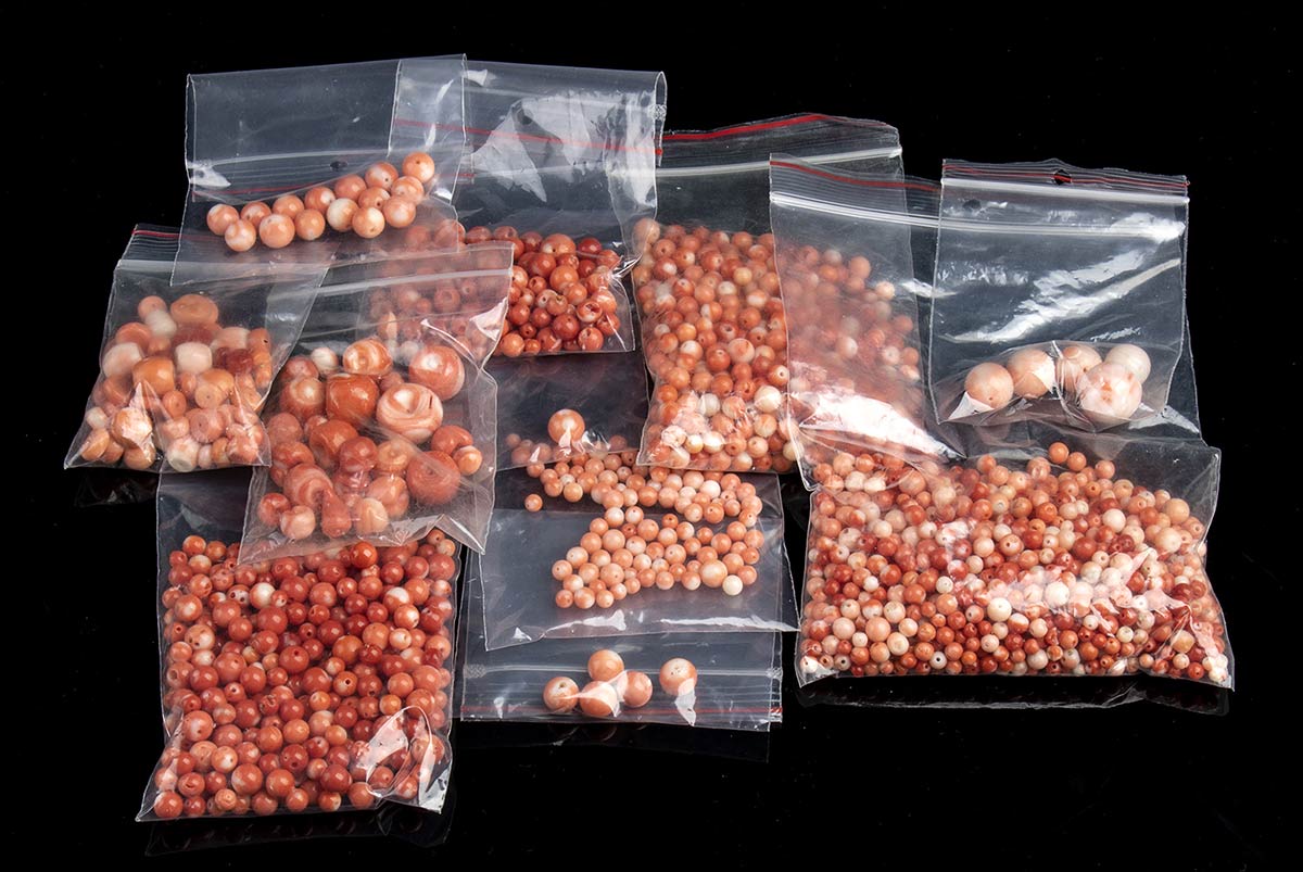 (corallium elatius). Sfere e barilotti. Diametri da 3,5 a 17 mm. Peso totale 608 gr circa. Stato di conservazione: ***** eccellente.