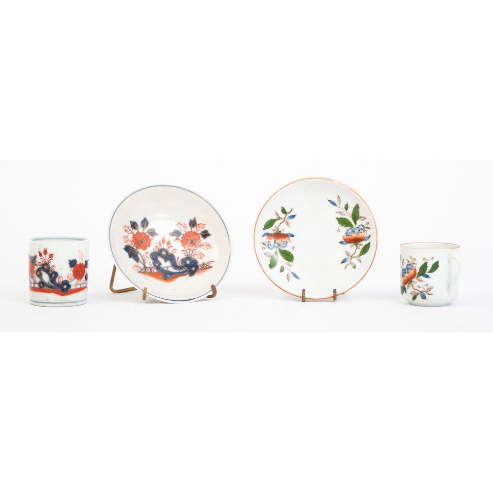 DUE TAZZINE CON PIATTINI in porcellana decorata.