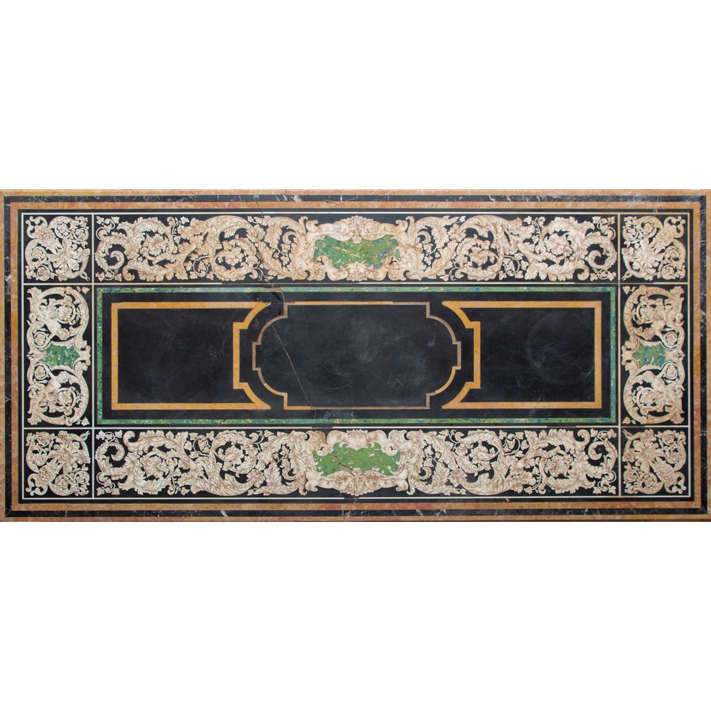 PIANO in scagliola riccamente lavorato con bordura in marmo rosso di Verona.