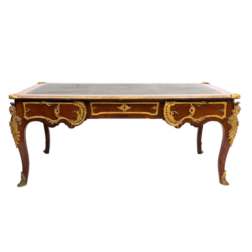 DIPLOMATICA a tre cassetti in palissandro riccamente guarnita di bronzi dorati, piano in pelle con bordura dorata.