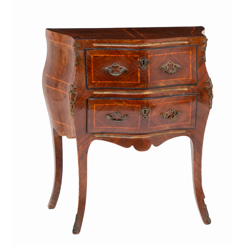 PICCOLO CASSETTONE stile Luigi XV a due cassetti in legno di ebano con filettature in bois de rose.