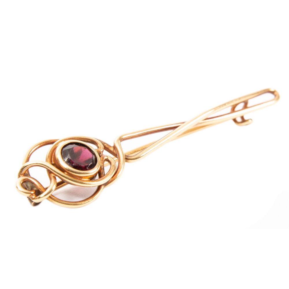 SPILLA in oro giallo 18 KT e granato (g. 3,80).