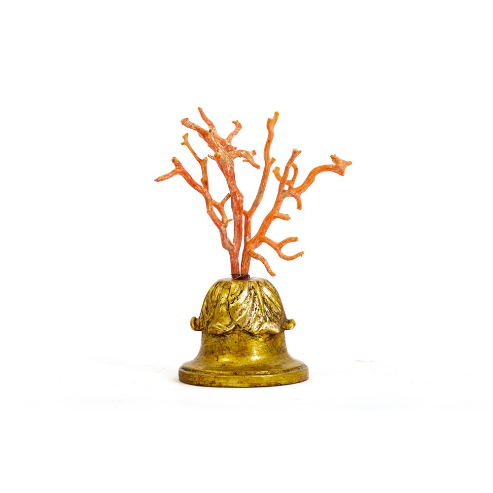 RAMETTO DI CORALLO con base in legno dorato (restauri e rottura).