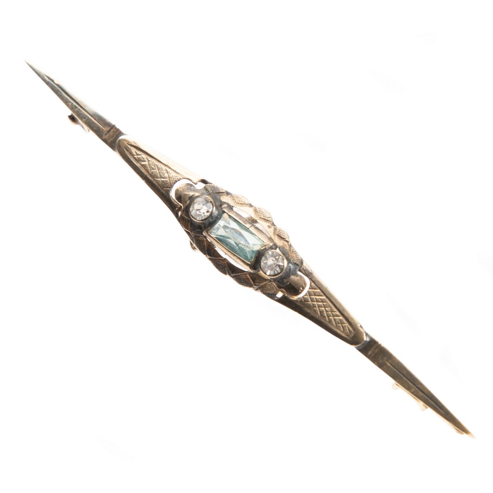 SPILLA in oro 9 KT e zaffiri bianchi (g. 2,00).