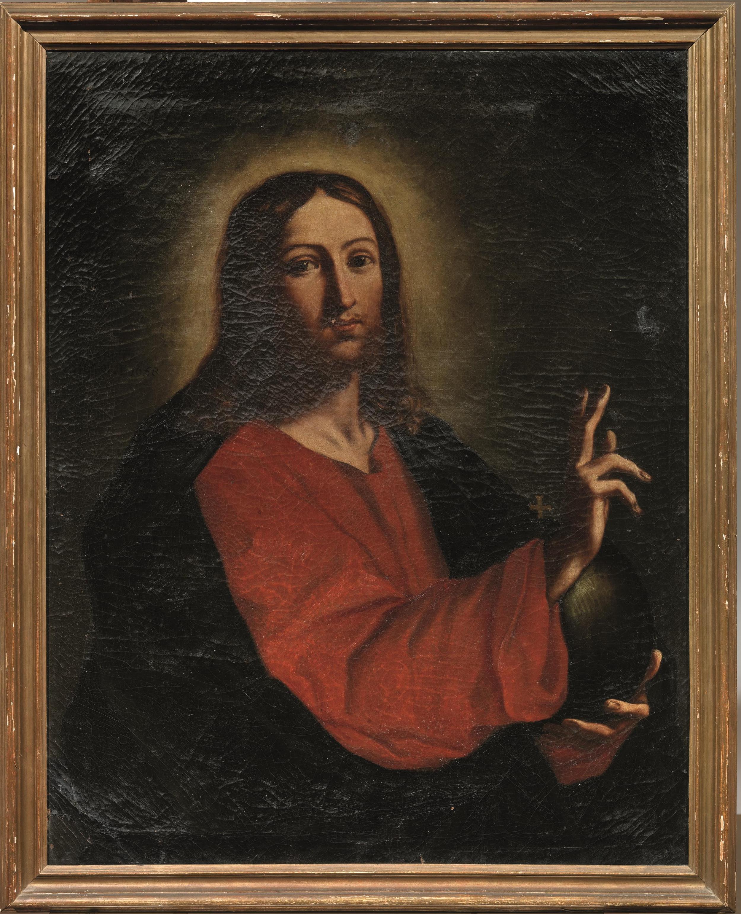 “Una mezza figura d’un Salvatore per donare al mio maestro da Sonare”. Così Elisabetta registra il soggetto tra i quadri compiuti nel 1658 (Nota dei quadri…, in C.C. Malvasia, Felsina Pittrice, Bologna 1678, p.468). Inedito e non replicato, unico per soggetto e composizione, il nostro dipinto potrebbe essere senz’altro l’opera qui menzionata, donata da Elisabetta al suo maestro, forse in cambio di quelle lezioni che la resero musicista provetta oltre che splendida pittrice. Sotto la stessa dicitura compaiono, negli anni successivi, la Musica (1659; collezione privata) e la Poesia (1660), entrambe replicate a differenza della nostra composizione, fin qui considerata perduta. Si veda, per le opere citate, Elisabetta Sirani “pittrice eroina” 1638-1665. Catalogo della mostra a cura di Jadranka Bentini e Vera Fortunati, Bologna 2004, pp. 229-30, n. 83.