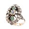ANELLO a spoletta in oro giallo 9 KT e argento con diamanti ct. 0,10 e smeraldi ct. 0,08 e pietra semipreziosa (g. 5,60).