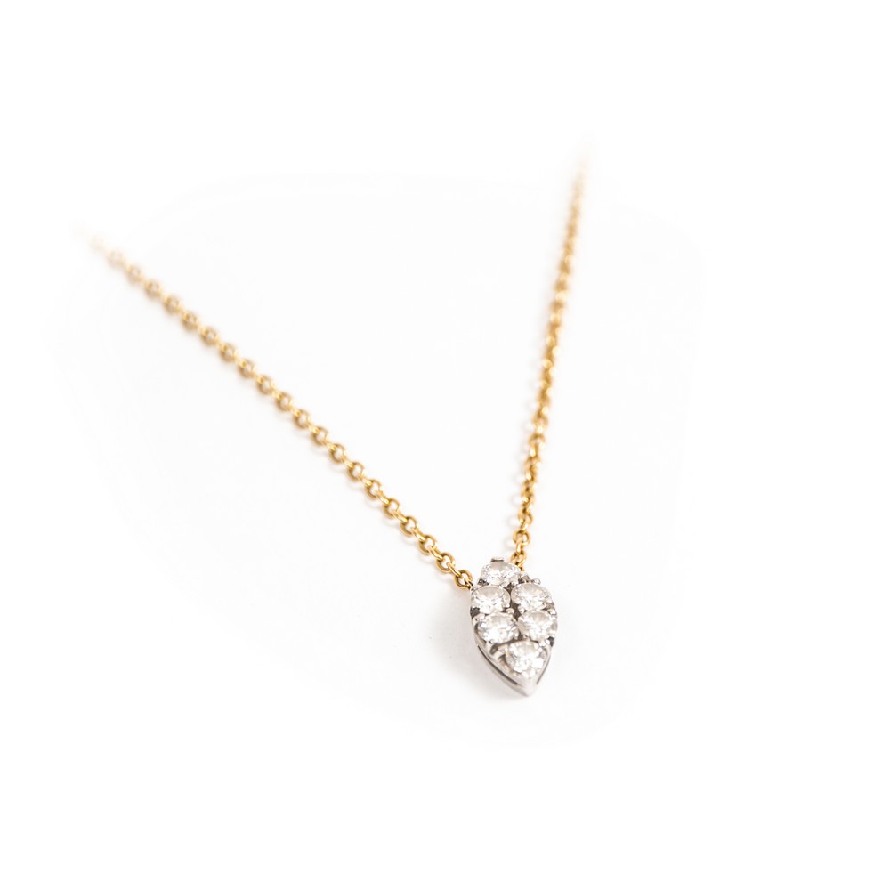 COLLANA in oro giallo 18 KT con ciondolo in oro bianco 18 KT e diamanti taglio brillante ct. 0,60 I color VS1 (g. 5,00).