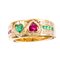 ANELLO Damiani in oro giallo 18 KT con diamanti taglio brillante ct. 0,90 H color VVS1, smeraldi ct. 0,30 peso di stima e rubini ct. 0,30 peso di stima (g. 8,00).