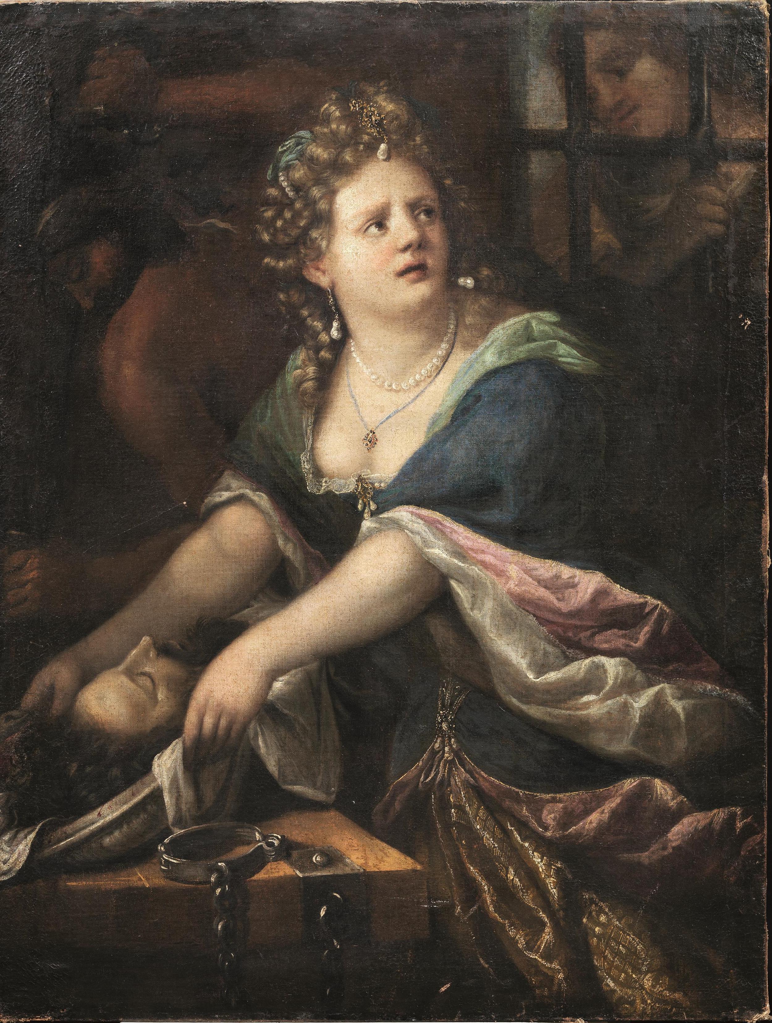 Pittore veneto, sec. XVIISALOMÈ CON LA TESTA DEL BATTISTAolio su tela, cm...