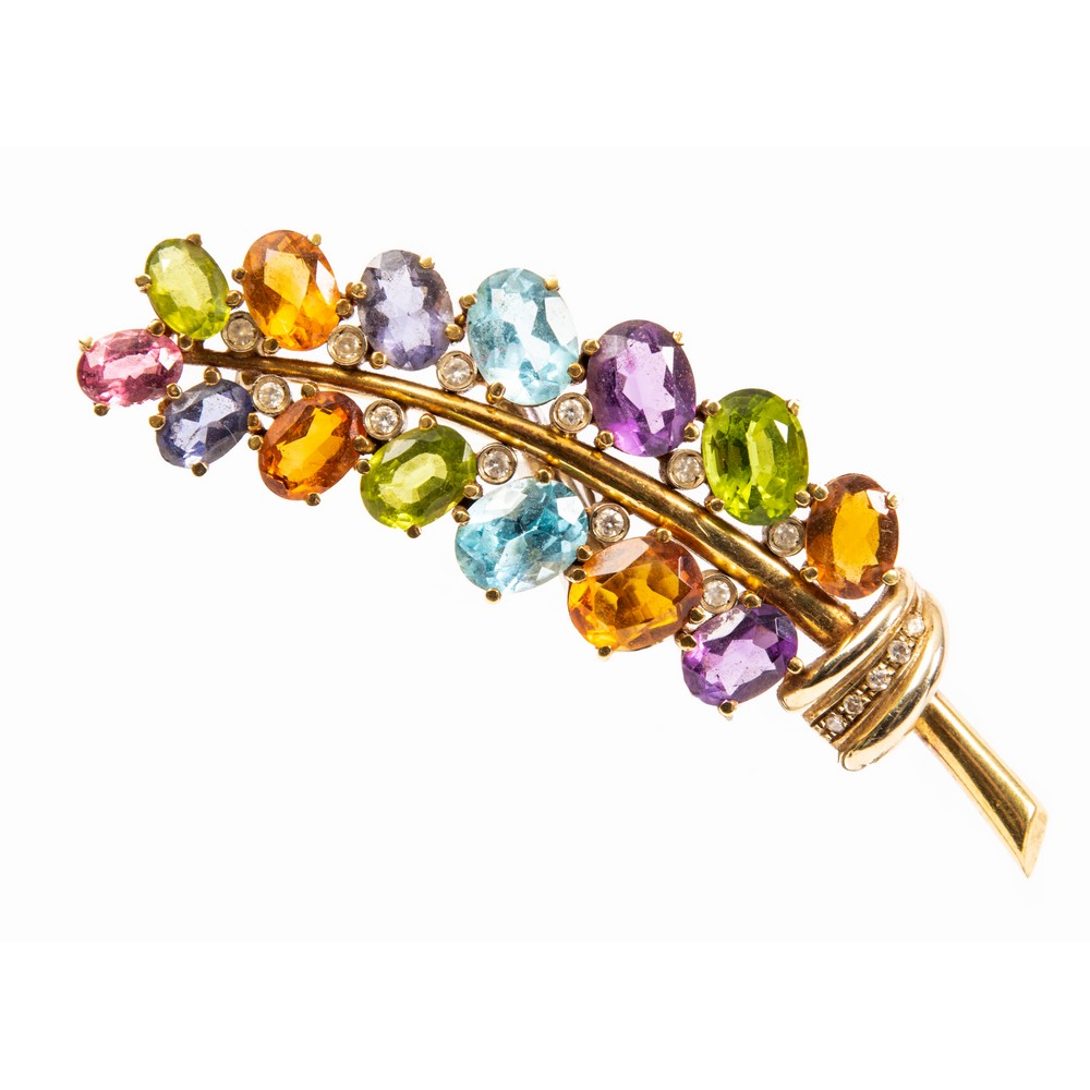 SPILLA in oro18 KT con diamanti e pietre semipreziose