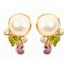 ORECCHINI in oro giallo 18 KT con tormaline, ametiste e perle mabe' e diamanti taglio brillante ct. 0,75 peso di stima I color SI2 (g. 20,40).
