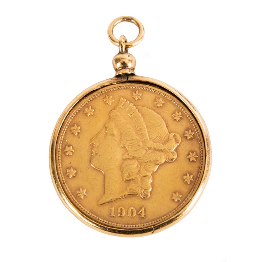 20 DOLLARI USA 1904 in oro 900, cornice in oro 18 KT.