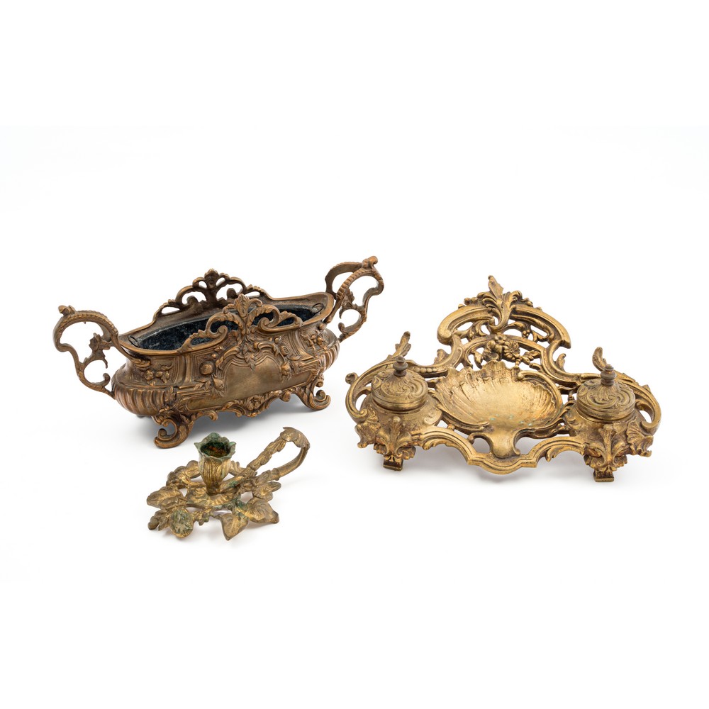 Fioriera in metallo, Calamaiera in bronzo e Portacandela in bronzo.