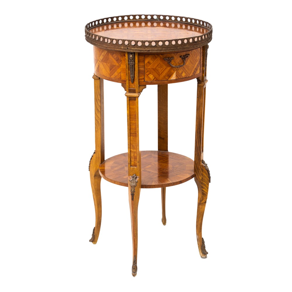 di gusto francese con cassettino, in legno di rosa e fregi in bronzo.