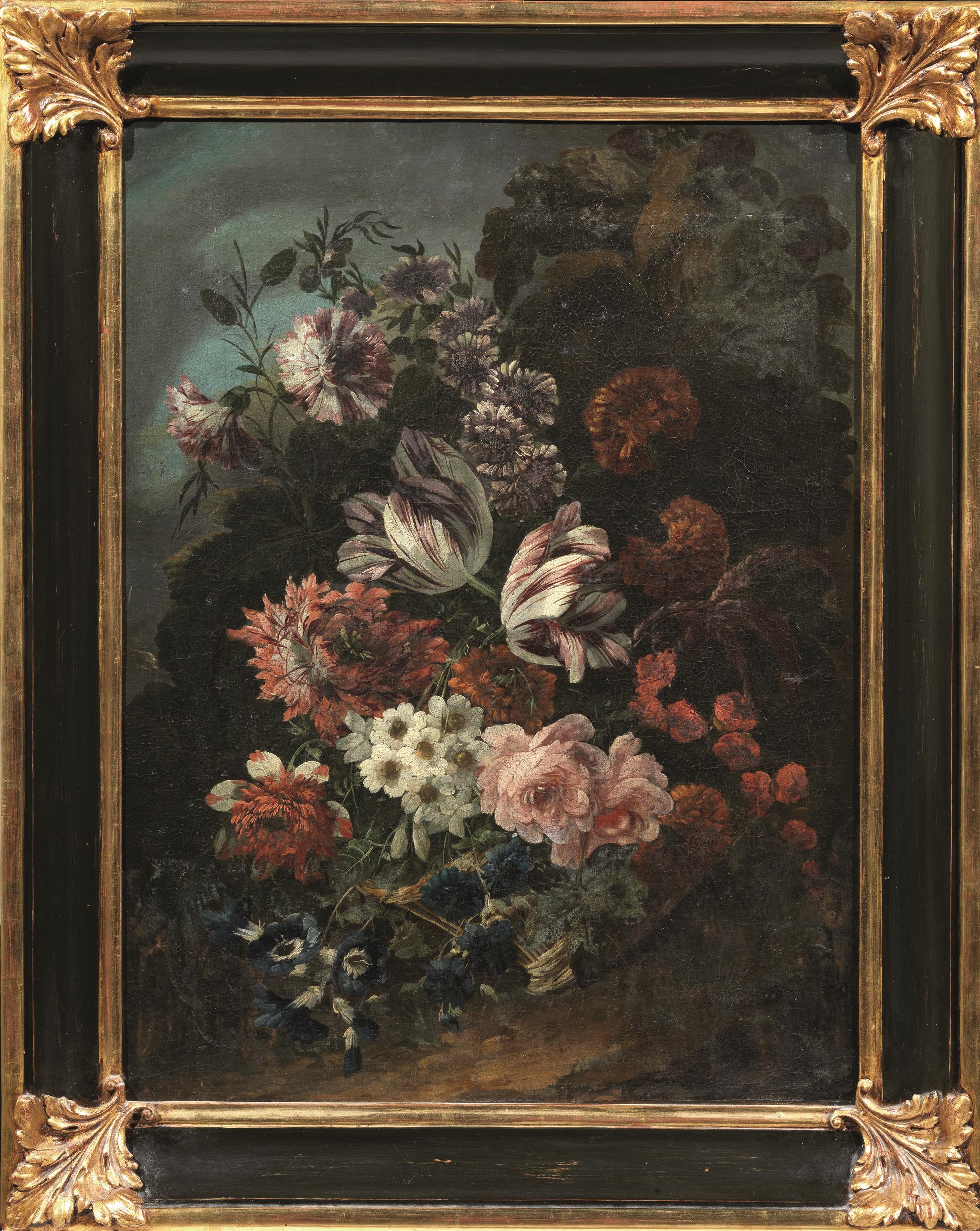 Pittore fiammingo, fine sec. XVII-inizi XVIIICOMPOSIZIONE FLOREALE IN UN...