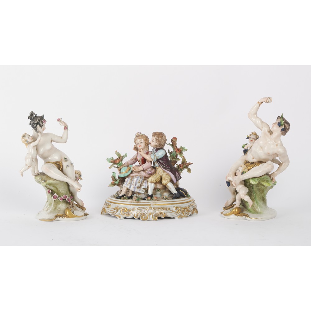 Coppia di sculture in porcellana Capodimonte dipinta "Figure allegoriche" (rotture e restauri).