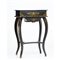 TAVOLINO da lavoro in legno laccato e decorato con tarsie in madreperla.