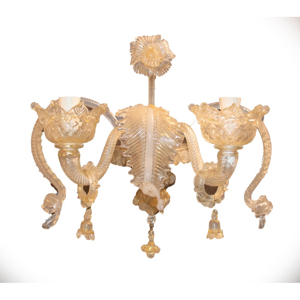 APPLIQUE a due luci in vetro di Murano nei toni del rosa, bianco e oro.