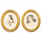 COPPIA DI STAMPE acquarellate di forma ovale entro cornici dorate.