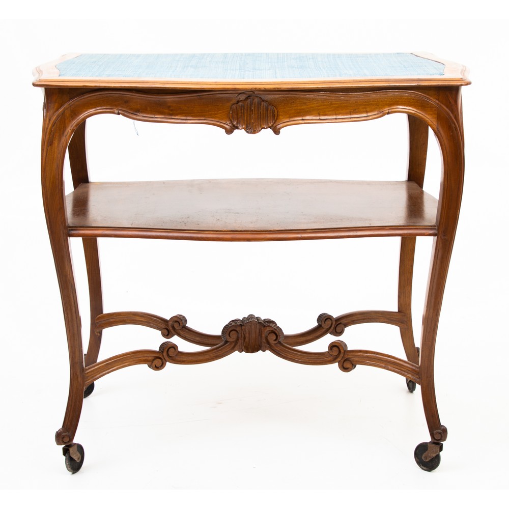 SERVOMUTO stile Luigi XV in legno di noce con piano in legno rivestito in tessuto.