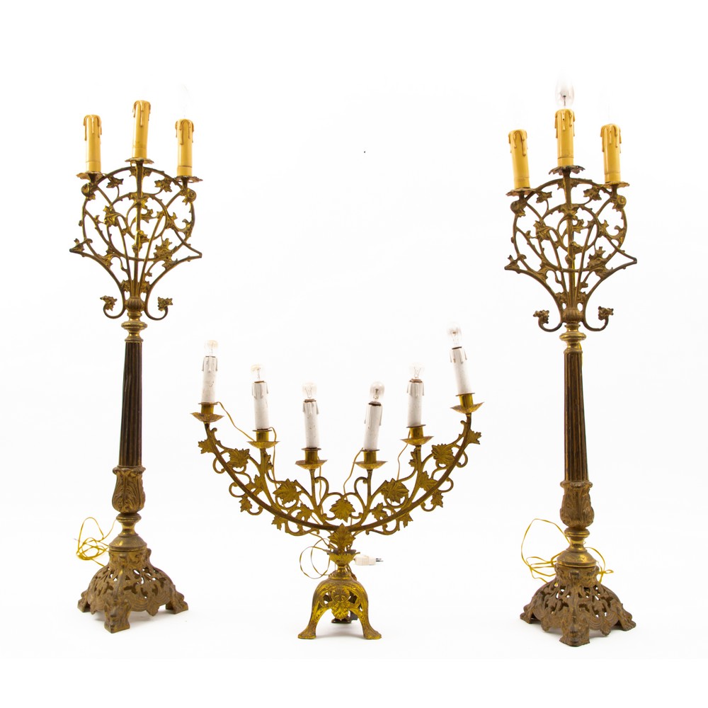 composto da due candelabri a tre luci e da candelabro ad arco a sei luci.